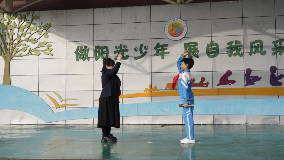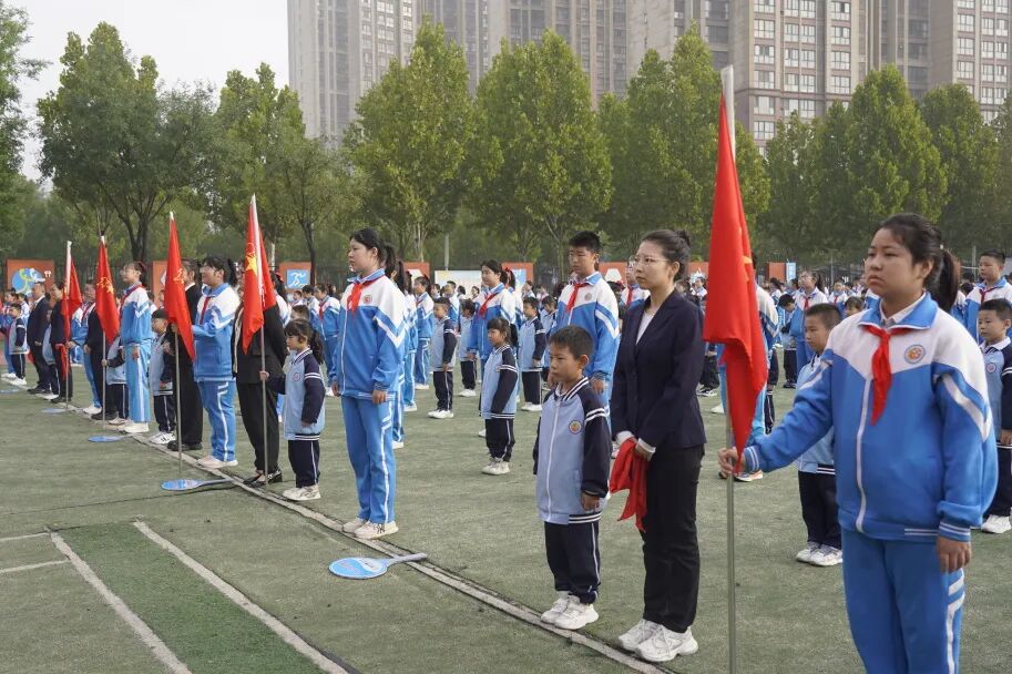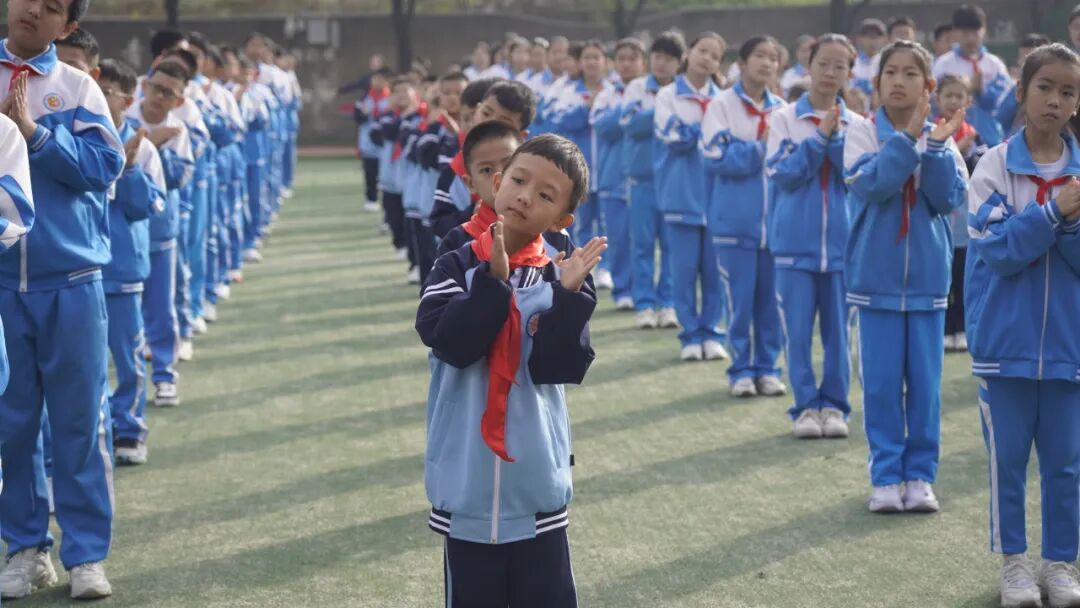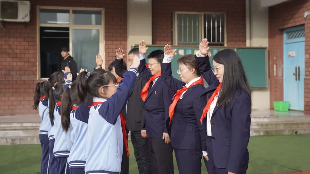 红领巾在胸前飘扬,传承在心间流淌。六年级队员亲手为二年级新队员系上红领巾,这是理想的交接,更是精神的接力。“我是中国少年先锋队队员!”铮铮誓言响彻云霄,那是新时代好少年对祖国的庄严承诺。胡维军副校长寄语殷切:“今天戴上红领巾,明天扛起强国使命!”
