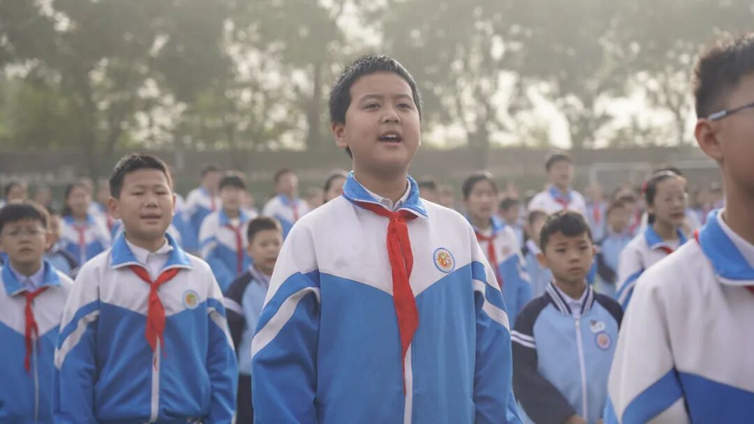 队旗飘扬,歌声嘹亮。旗手们迈着铿锵步伐护卫队旗入场,每一双眼睛追随那抹鲜红,每一个队礼写满崇敬。《我们是共产主义接班人》的歌声喷薄而出,千颗童心同频共振,奔涌着对祖国的赤诚。