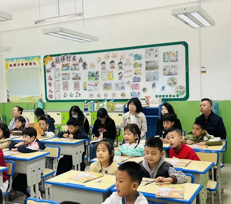 课堂中,学校领导与听课教师们一边详细记录教学环节,一边认真观察孩子们的课堂反应,思考“教师提问是否精准”、“互动游戏是否有效”等细微环节。