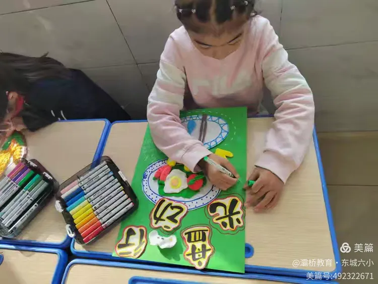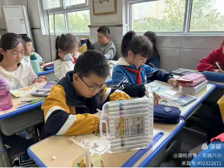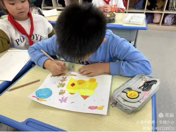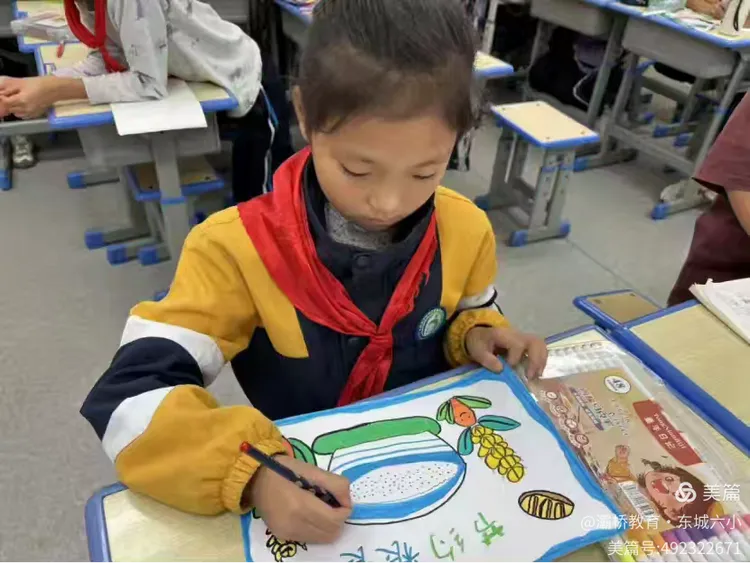 美术课上,孩子们化身“节粮小卫士”,亲手绘制出一幅幅生动的作品。