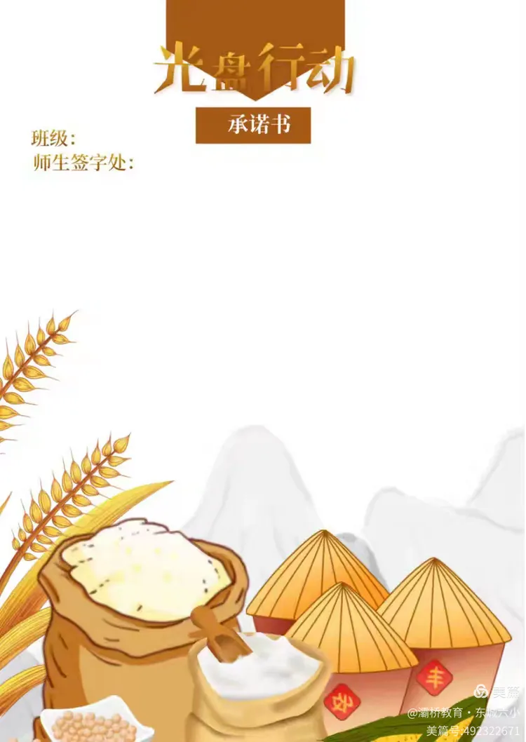 知是行之始,行是知之成。同学们决定将节约粮食,最终要落实到行动上,他们在“光盘行动,从我做起”的承诺书上郑重地签下了自己的名字,将用每日的“空盘子”履行自己的诺言。