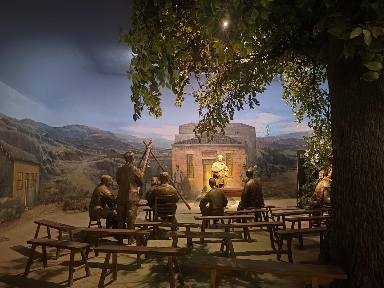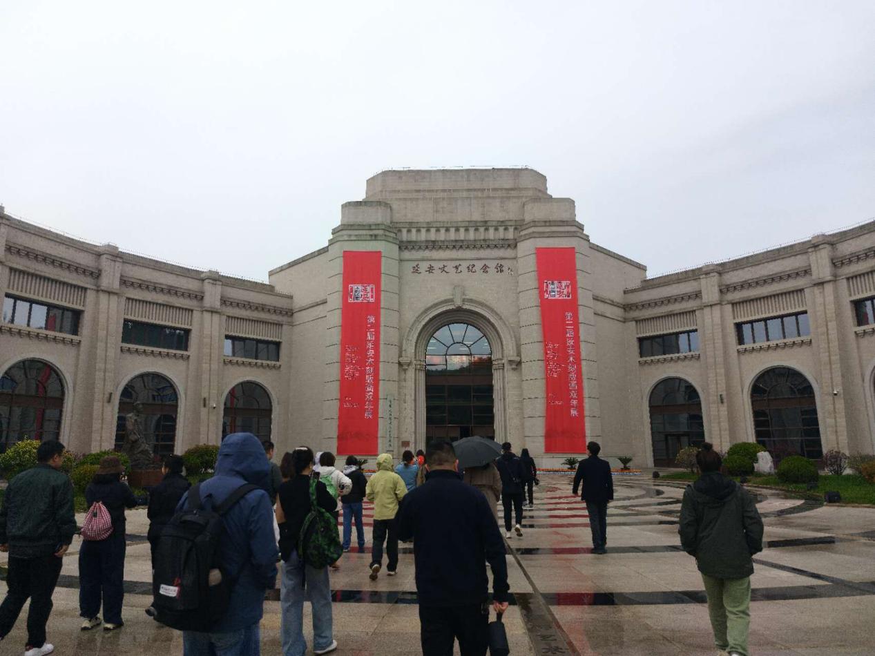 记者团一行步入位于桥儿沟的延安文艺纪念馆,作为全国唯一一座全面展示革命文艺发展史的专题纪念馆,其主体建筑宏伟庄重。据介绍,纪念馆于2020年5月23日正式对外开放,常设展览《延安文艺的光辉历程》以1935年至1948年的延安十三年文艺实践为主线,通过大量珍贵图片、历史文物以及现代化声光电技术,全景再现了延安时期革命文艺的辉煌成就。