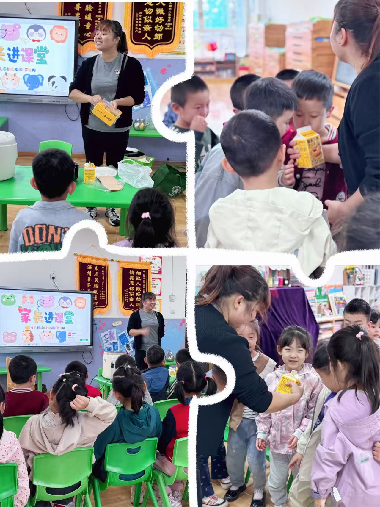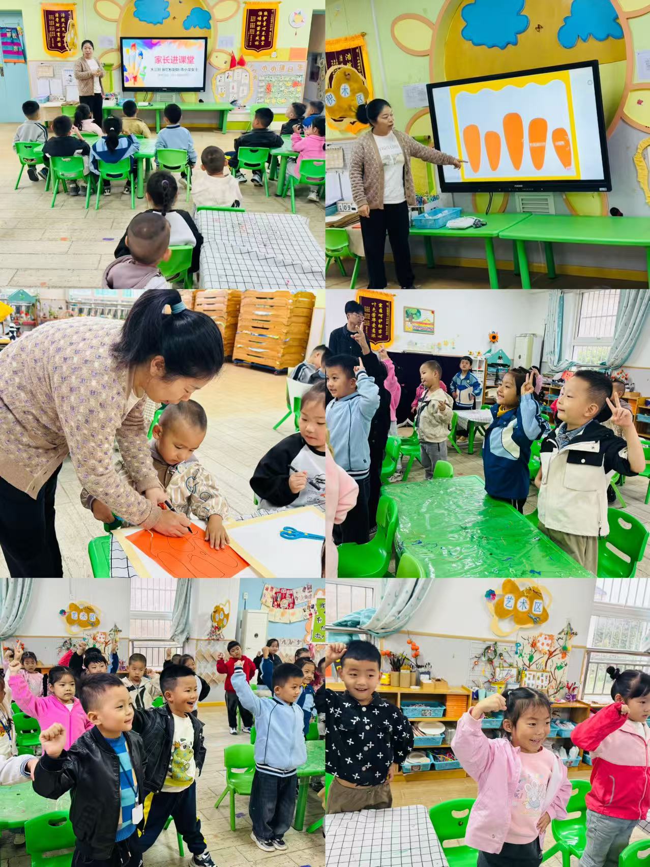 家长进课堂活动中,各班级邀请家长结合自身职业与特长,为孩子们带来了丰富多元的特色课程:中一班刘奕墨妈妈项露女士以 “健康探险” 的形式开展《解锁 “抽血” 小秘密》医学课,帮孩子消除对抽血的恐惧,传递健康知识与职业敬意;中二班孙沐菥妈妈李阿倩女士(中医针灸从业者)带来《中医妈妈的 “传染病防护小课堂”》,用孩子们感兴趣的方式解读中医知识,吸引孩子专注聆听;大二班张泽宸妈妈常红妮女士开启《甜蜜蛋挞小课堂》,耐心讲解食材、示范操作,让孩子在烘焙中感受乐趣;大三班张忆杉妈妈陈小龙女士通过《萝卜的新发型》创意手工活动,引导孩子观察萝卜特征、用彩纸等材料设计发型,鼓励创意表达;小一班杨苡泽妈妈白露女士开展《云游 - 威海》课程,借助旅行视频与贝壳礼物,带孩子 “领略” 威海风光,播下探索自然的种子;小二班杨子沫妈妈苏欢女士则以儿歌、游戏等形式讲授《认识五官》健康课,帮助孩子认识五官名称、位置与用途,树立保护意识,各课堂均充满童趣与教育意义,彰显了家园共育的温暖力量。