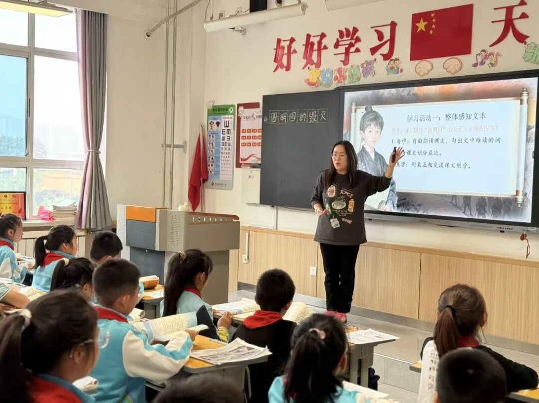 陈雪松老师执教《圆明园的毁灭》一课,情境创设有效,情感共鸣强烈,教学中通过圆明园遗址视频、火烧圆明园纪录片等多媒体资源,成功营造出历史的厚重感与沧桑感。环节设计层次清晰,重点突出,从导入到字词学习,再到整体感知、深入探究,最后总结升华,环节推进逻辑清晰。
