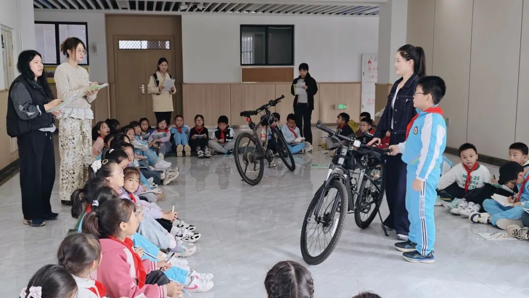 景翠老师带领四年级七班的学生进行美术《自行车的局部写生》课程。阳光下,几辆自行车静静摆放,老师先引导学生观察车轮纹理、车把细节等局部特征,再示范如何用线条勾勒结构。同学们拿起画笔,专注捕捉车链的交错、车座的弧度,在真实场景中感受写生的乐趣。