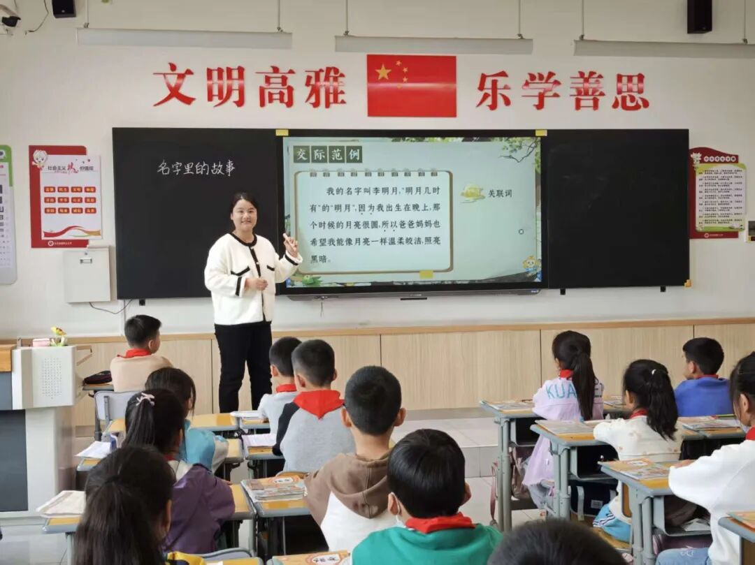周笑颖老师讲授《口语交际:名字里的故事》,聚焦“清楚表达与互动交流”的语文要素。以教师示范引导学生掌握名字故事的表达要素,再对比示例,让学生感知逻辑表达的重要性,通过小组互评实践巩固方法,最终梳理名字来历及含义,并拓展互动技巧,既落实了表达训练,又贴合学生生活。