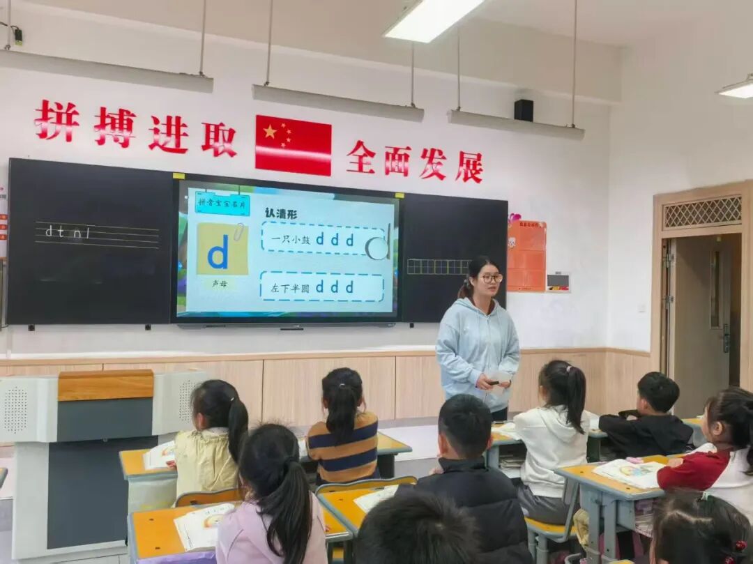 在《d t n l》讲授授课中,郭佳楠老师通过情境创设、游戏互动、联系生活等方式,读准音、认清形,让抽象拼音变成沉浸式体验,既攻克学习重难点,又激发学生语文学习兴趣,助力学生养成主动学习习惯。