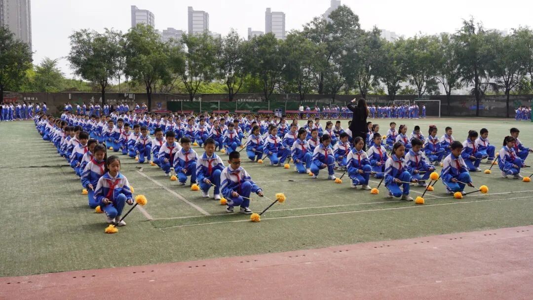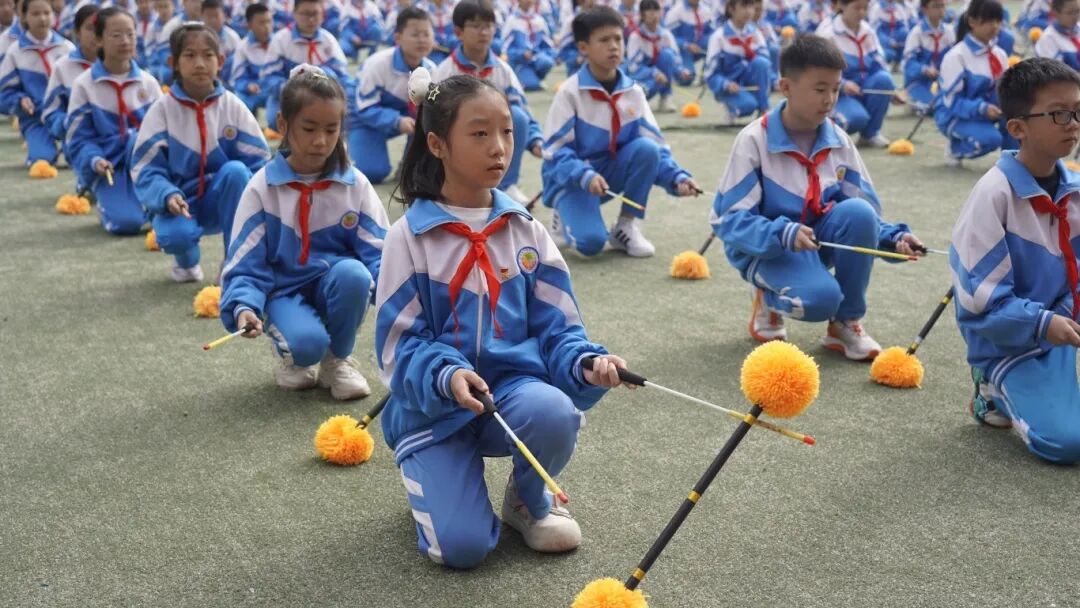随着音乐响起,彩色花棍在手中翻转、起落,动作整齐合拍,到位有力,灵动姿势与童真笑容相映,成为赛场最亮眼的风景。