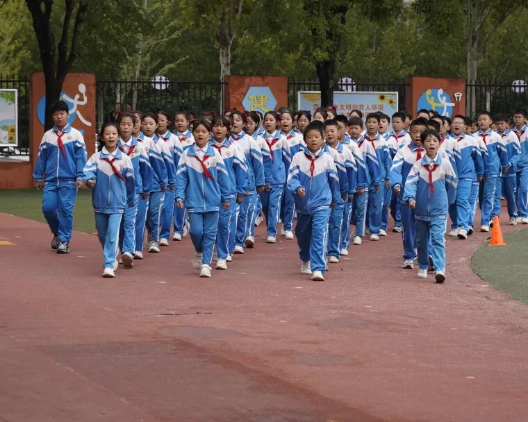 比赛尾声,各班喊着响亮口号有序退场,退场步伐依旧整齐、精神不减。“少年有志气轩昂,不负韶华逐光行”。