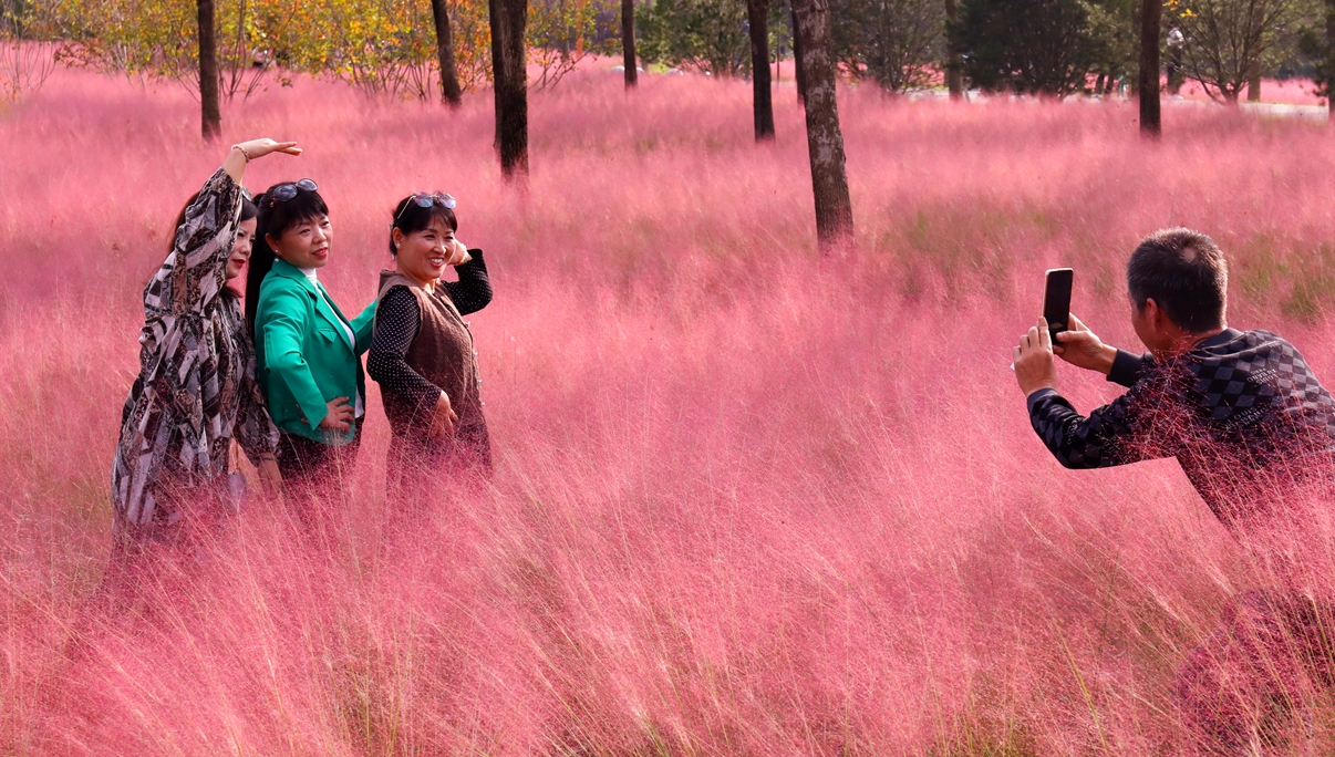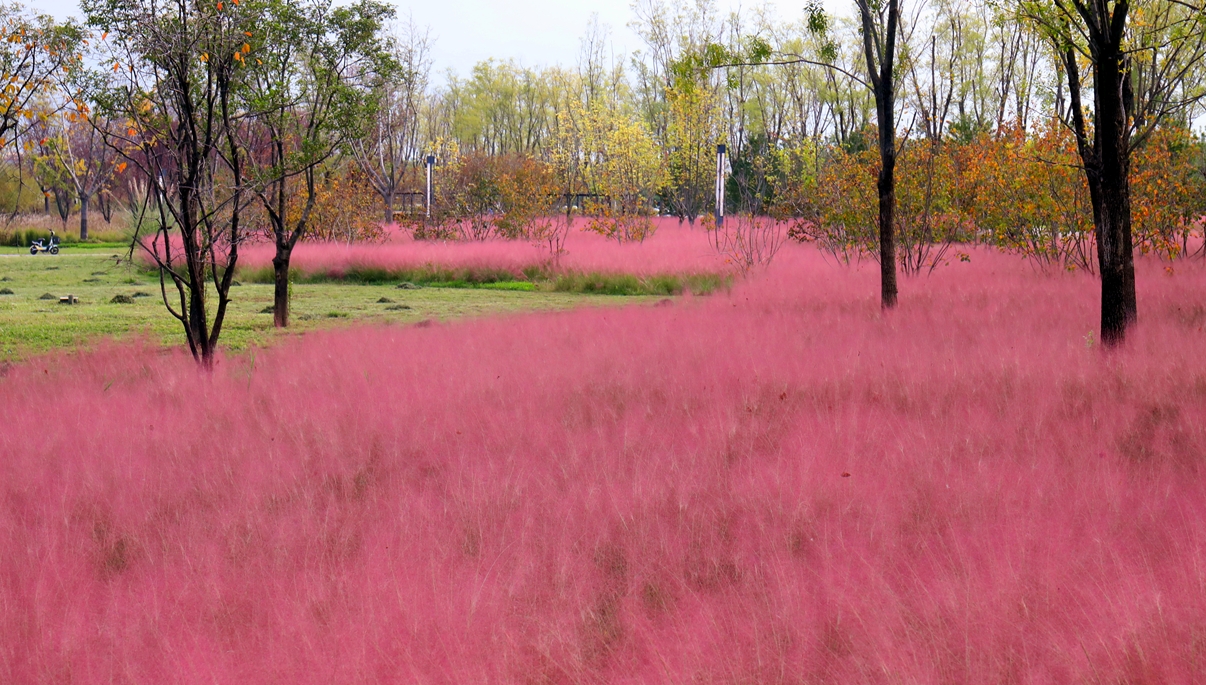 近期,西安高新区梁家滩运动公园的粉黛乱子草进入花期,大片的粉黛乱子草肆意绽放,在风中摇曳,放眼望去,如烟似霞,又如一片粉色绒毯铺展在大地之上,吸引了众多市民游客前来观赏拍照。