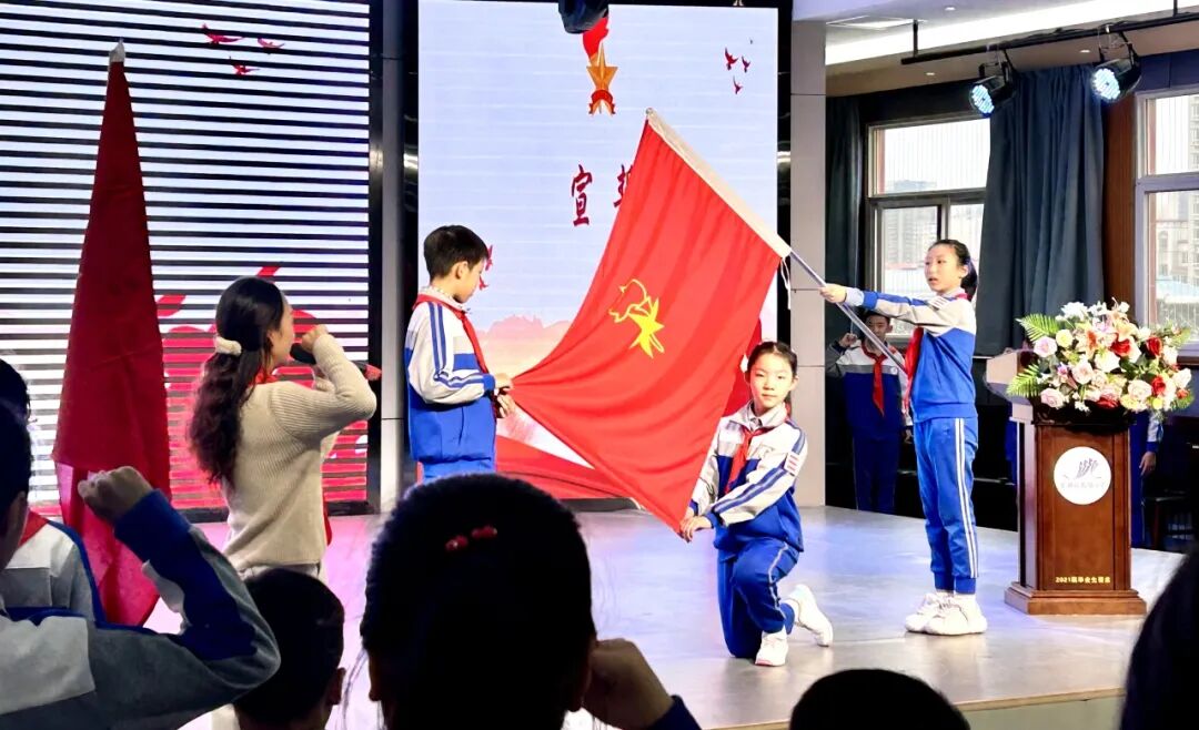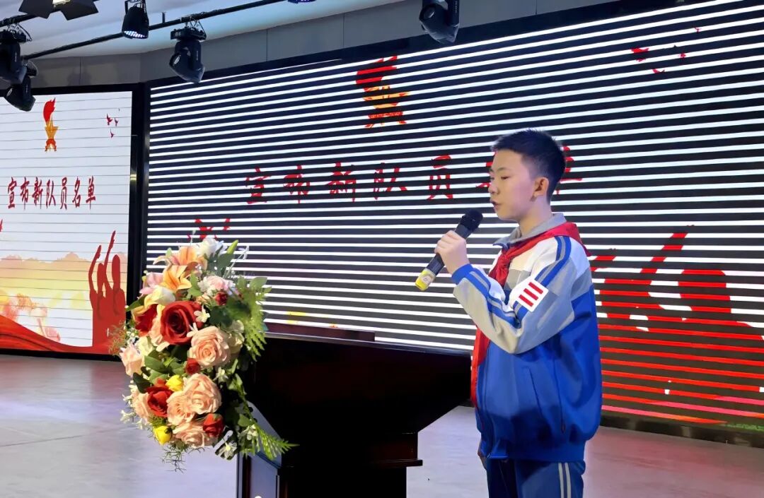 学校少先队大队委东茉涵宣读新队员名单,五年级少先队员代表为新队员佩戴上了鲜艳的红领巾。当红领巾在胸前飘扬,新队员们的脸上洋溢着自豪与喜悦。
