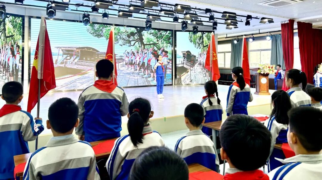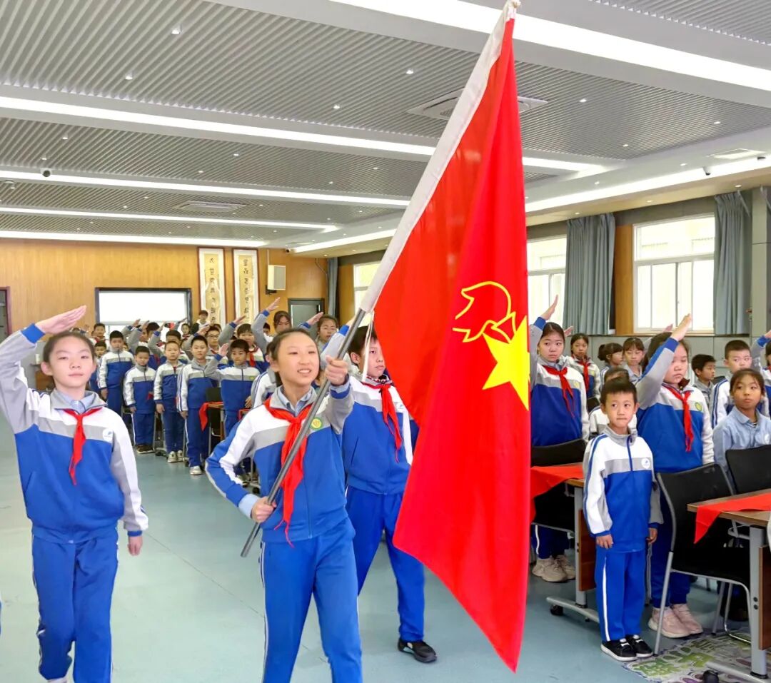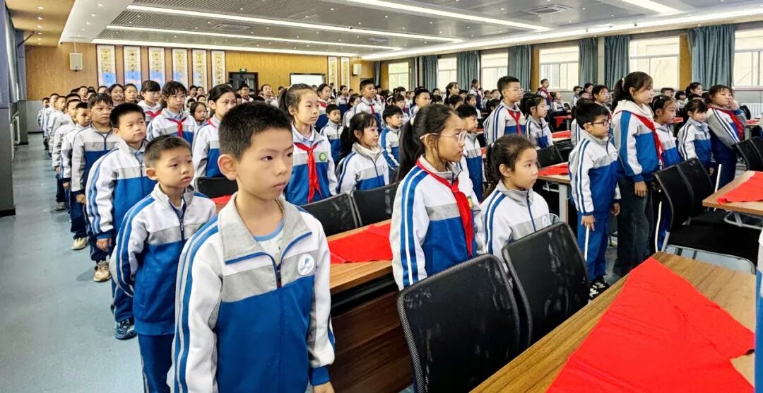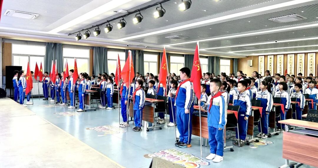 仪式在庄严的出旗曲中拉开帷幕。少先队员和少先队辅导员们精神饱满,庄严地敬起队礼。随后,全体人员齐声唱响中国少年先锋队队歌,激昂的旋律回荡在大厅之中。