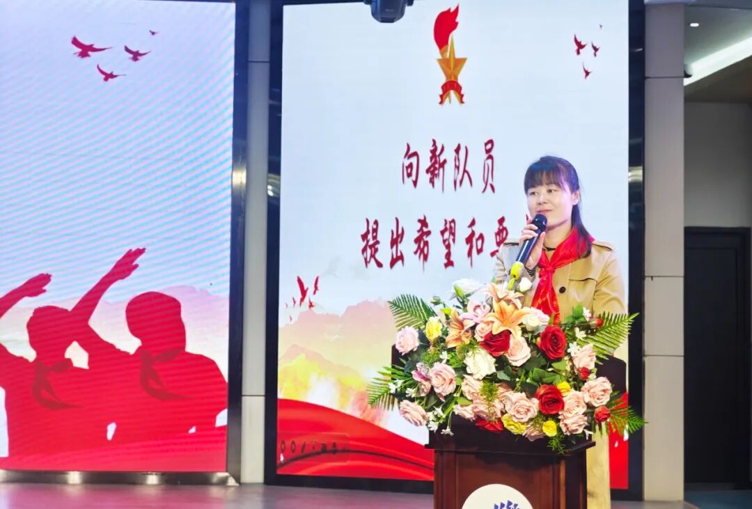 学校副校长、少工委副主任马虹同志向新队员提出了希望和要求,她鼓励新队员们要树立远大理想,培养优良品德,勤奋学习,强健体魄,要从小学先锋,长大做先锋,努力成长为能够担当民族复兴大任的时代新人。