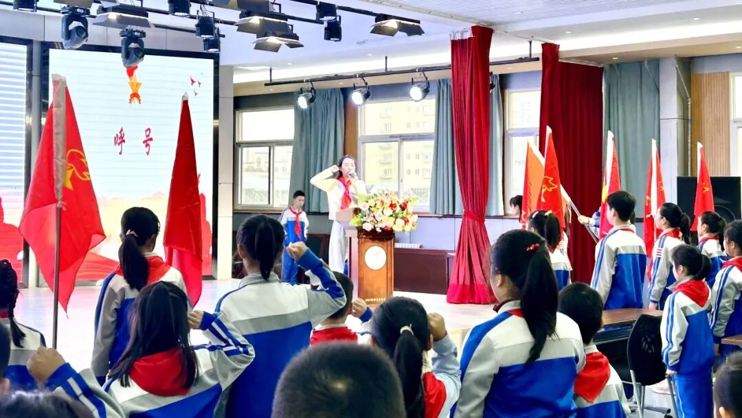 在少先队大队辅导员仝桐老师的带领下,新队员们高举右拳,庄严宣誓,表达了为共产主义事业贡献力量的坚定决心。