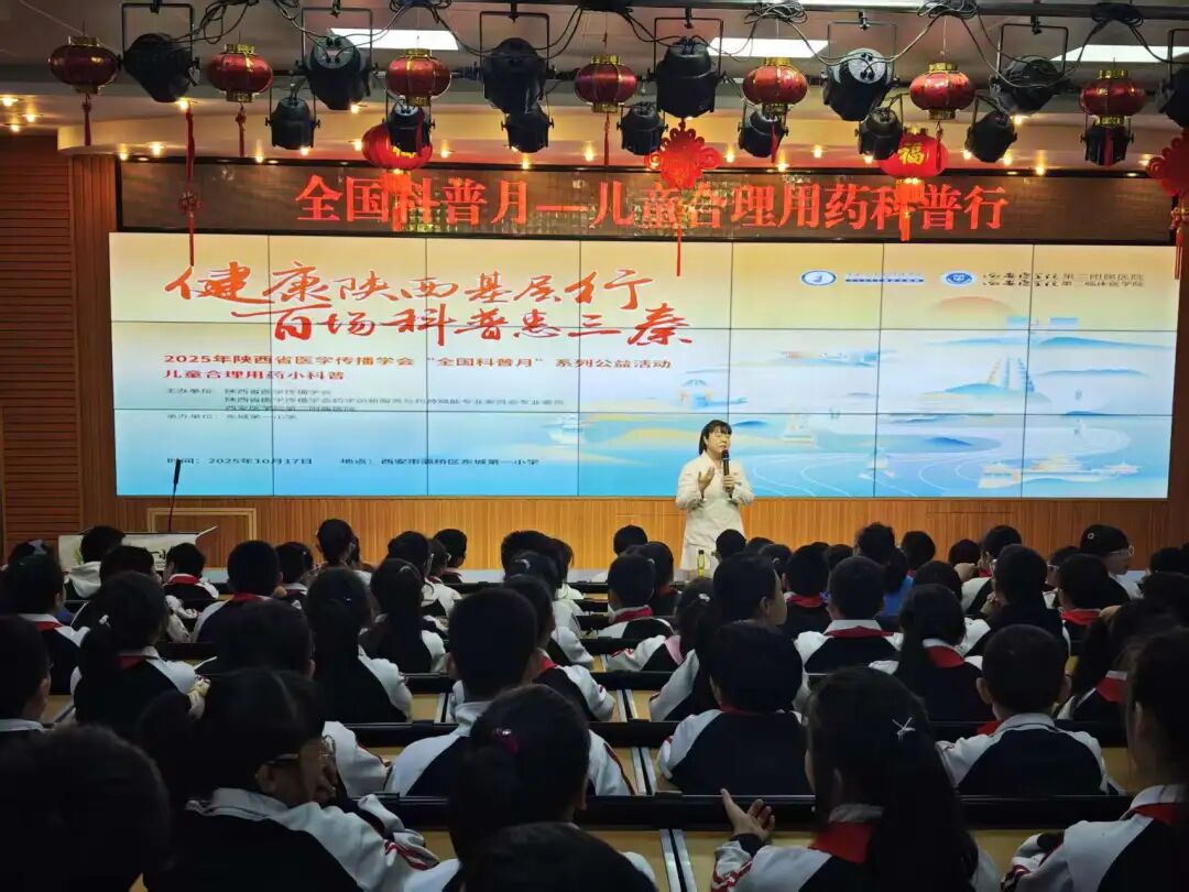 为积极响应“全国科普月—儿童合理用药科普行”主题宣传活动,2025年10月17日,西安市灞桥区东城第一小学邀请西安医学院第二附属医院曹小雨主管药师对该校部分学生开展安全用药科普活动。