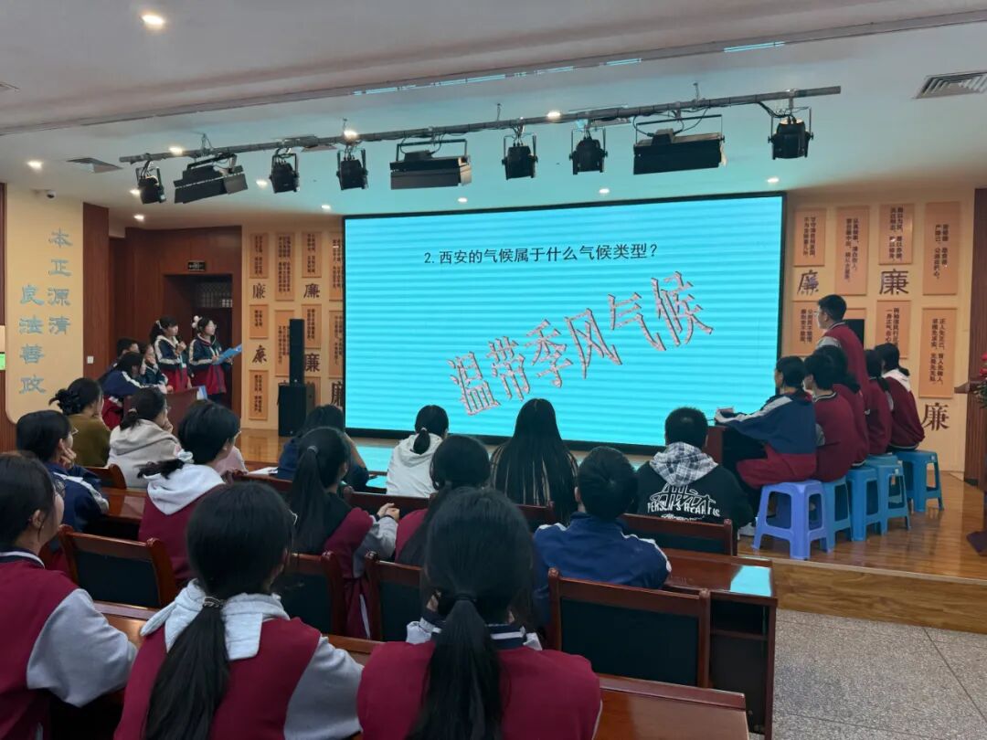 随着 PPT 弹出 “我国的根本政治制度是什么?”“西安的气候属于什么气候类型?” 等题目,政治关、地理关相继开启。小组成员迅速低头交流,有的快速调动脑海知识,有的小声确认答案细节,最终由代表举手抢答。清脆的回答与评委的点头认可,让现场紧张感持续升级。