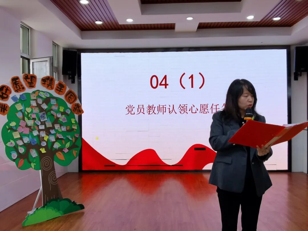 党员教师认领任务后,全体党员在邢书记的带领下,高举右拳庄严宣誓:“践行初心使命,助力师生成长!”铮铮誓言响彻会场,彰显着党员教师服务师生、推动成长的责任与担当。