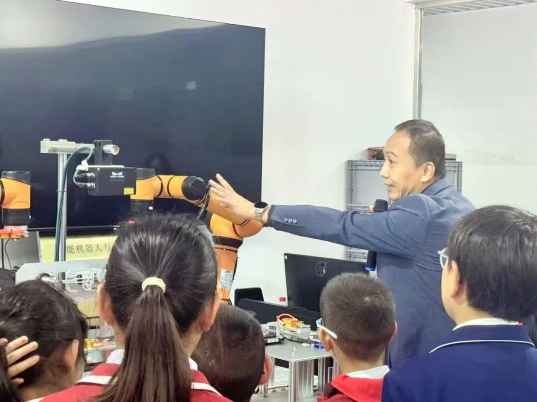 “快看!那个机械臂会自己找零件!”一声惊呼从陕西科技大学的机器人实验室里传出。下午三点,百花小学的同学们仿佛踏入了一个未来世界——灵活的机械臂正在流水线上精准作业,智能传感器闪烁着蓝光,一条完整的智能制造系统正有条不紊地运转着。