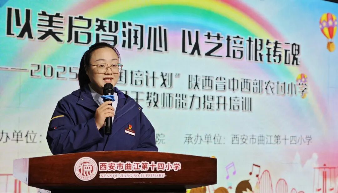 以美启智润心,以艺培根铸魂。2025年10月17日,由西安文理学院主办、西安市曲江第十四小学承办的“2025年国培计划”——陕西省中西部农村小学音乐骨干教师培训活动圆满落幕。活动通过主题分享、课例展示、成果汇演及校园游园等环节,成功搭建了美育理念与实践交融的平台。作为“国培计划”的重要实践环节,此次活动旨在提升音乐教师的综合素质,推动美育资源的均衡发展。