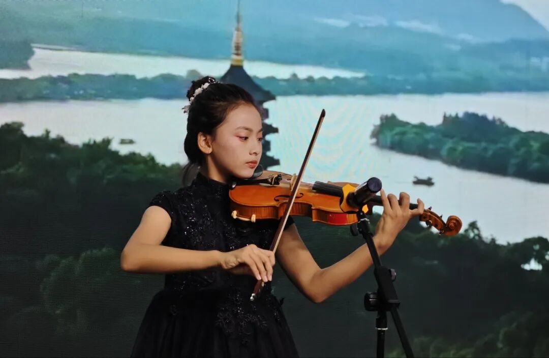 曲江十四小的“小小艺术家”们为与会嘉宾们呈现了一场精彩绝伦的视听盛宴:合唱《生长吧》、《小池》以纯净的童声唱响了对自然与成长的深情礼赞;戏曲《三月桃花》、《秦风唐韵》通过融合秦腔元素的表演,生动再现了盛唐气象与传统韵味;舞蹈《加油吖》以充满活力的舞姿展现了少年的蓬勃朝气;陶笛演奏《萱草花》、《声声慢》用悠扬的笛音传递出宁静与深情;朗诵《那些可爱的人》则以铿锵有力的语调向平凡英雄致敬。每个节目都充分展现了学校“以美育人”的教育成果,赢得了现场阵阵热烈的掌声。