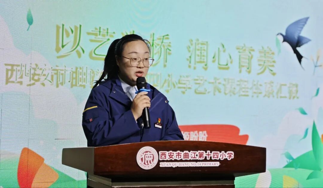 活动伊始,学校优秀少先队员代表及校啦啦操队成员带来了悠扬激昂与活力四射的暖场节目。学校副校长权少敏致欢迎辞,权校长向与会嘉宾深入解读了学校“艺术文化体系”。她提到,“学校以课程为基、以实践为翼,构建了'课堂+社团+活动'三维美育生态”。随后,学校教师发展中心负责人姬盼盼详细介绍了学校艺术课程体系,从“审美感知—艺术表现—文化理解”三个维度,展现艺术教育如何融入日常教学,为骨干教师提供可复制的成长思路。