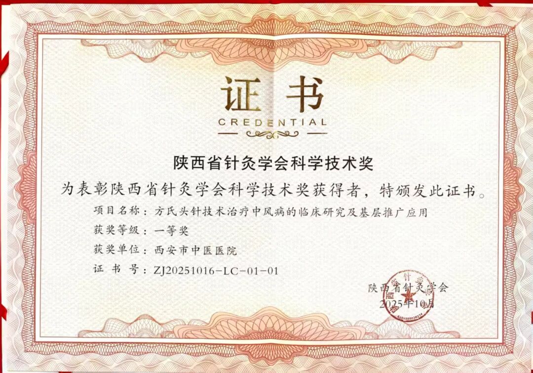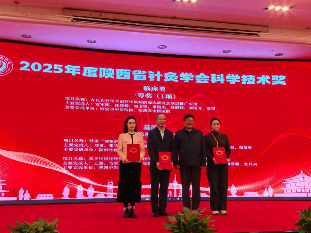 阳光讯(记者 郑亚雷)10月17日,2025年陕西省针灸学会学术年会在西安召开。会上,由西安市中医医院针灸推拿康复科安军明主任医师主持,联合陕西省中医医院共同申报的项目——“方氏头针技术治疗中风病的临床研究及基层推广应用”获陕西省针灸学会科学技术一等奖。这一殊荣标志着该项研究在技术原创性、临床价值及社会影响力方面获得了业内权威机构的高度认可。