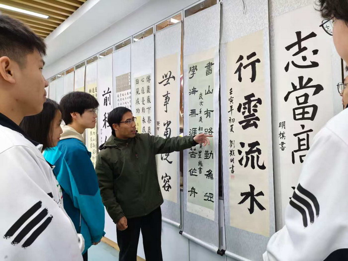 成为西安书法家协会会员后,他更是承担起书法社团的教学工作。面对孩子,他从不急于求成,而是先从“懂字”开始——讲柳公权“心正则笔正”的典故,聊王羲之“临池学书,池水尽墨”的坚持,让孩子们在文化故事里感受书法的温度。他善于根据孩子的性格调整教学方法:活泼的孩子侧重行书的流畅,文静的孩子先练楷书的沉稳,手把手的指导、耐心的鼓励,让原本觉得“书法枯燥”的孩子渐渐爱上笔墨纸砚。