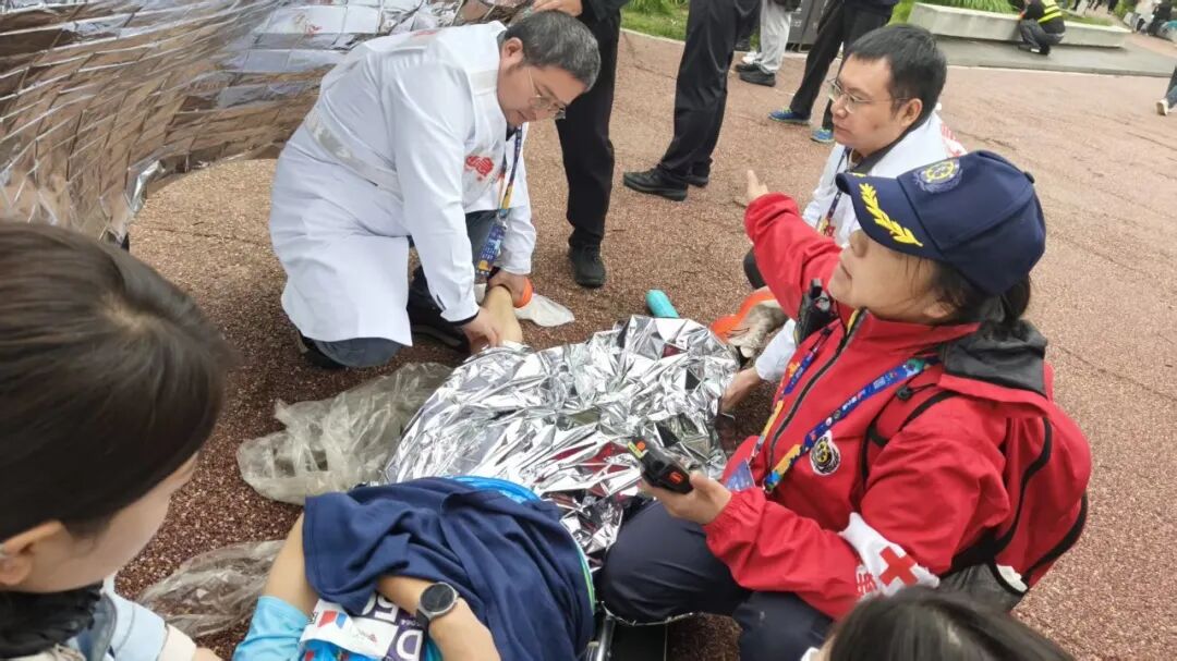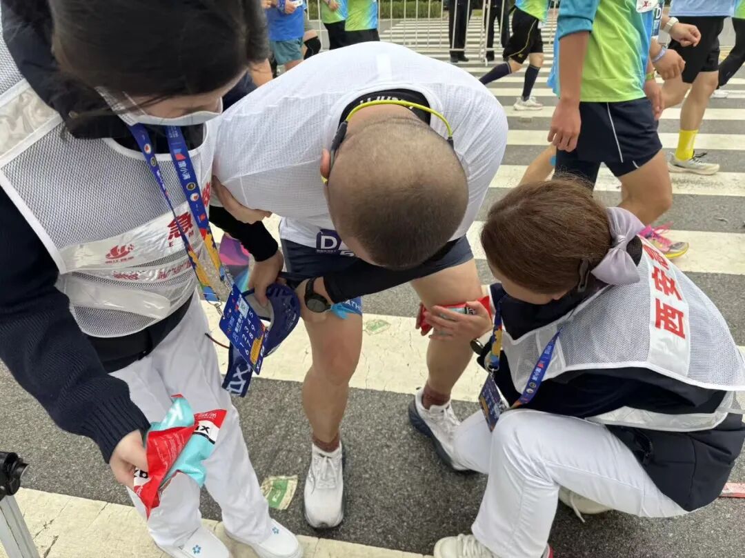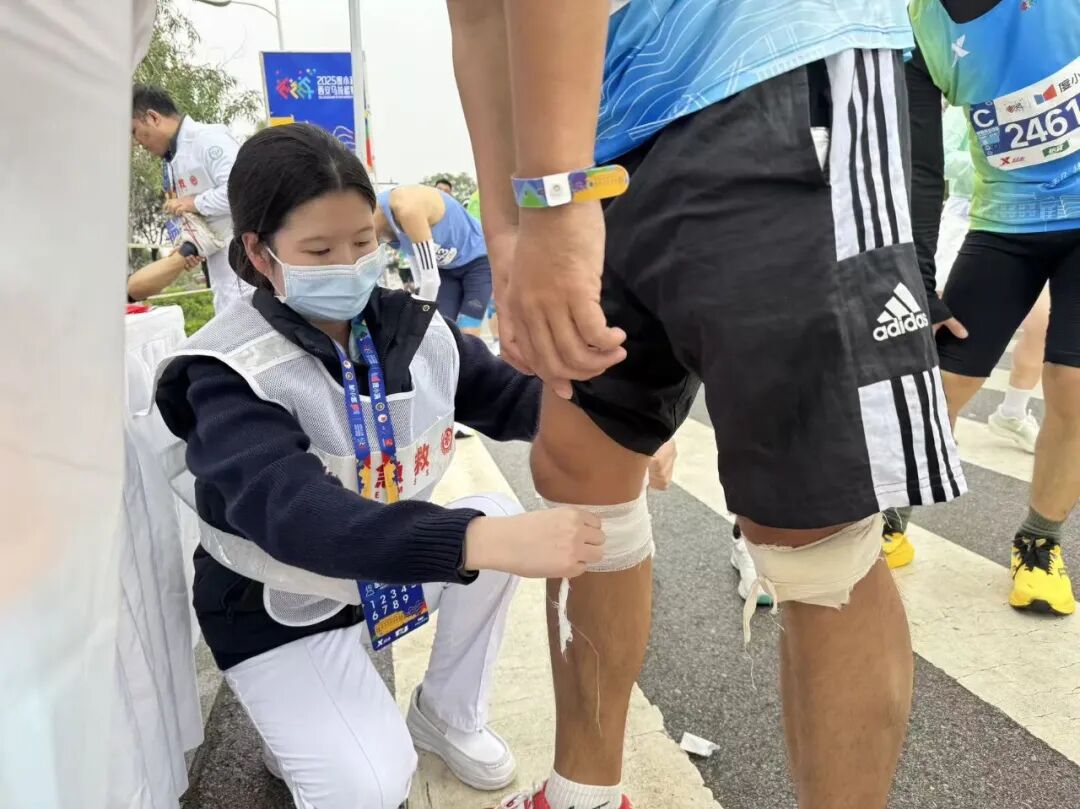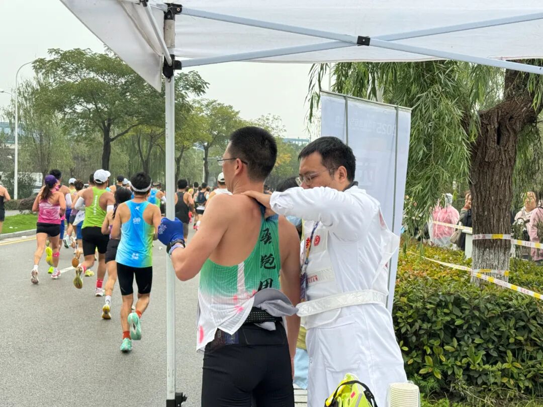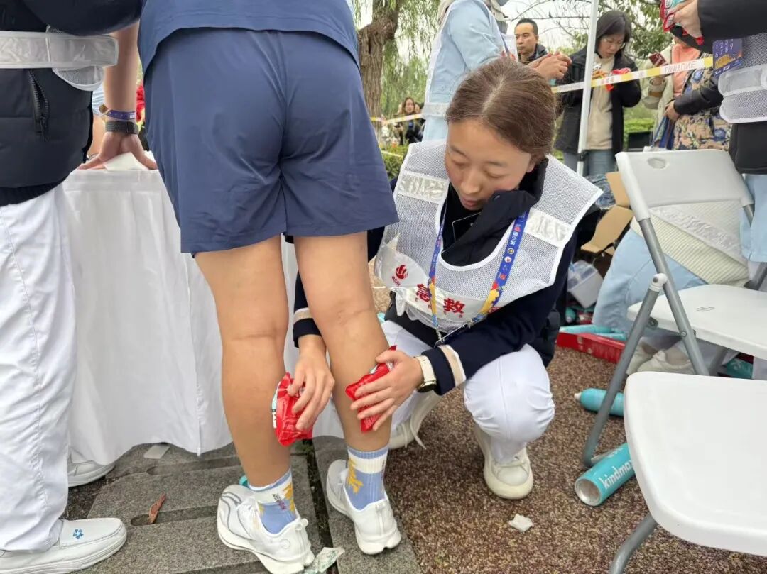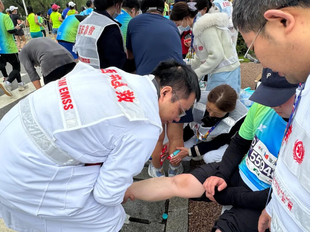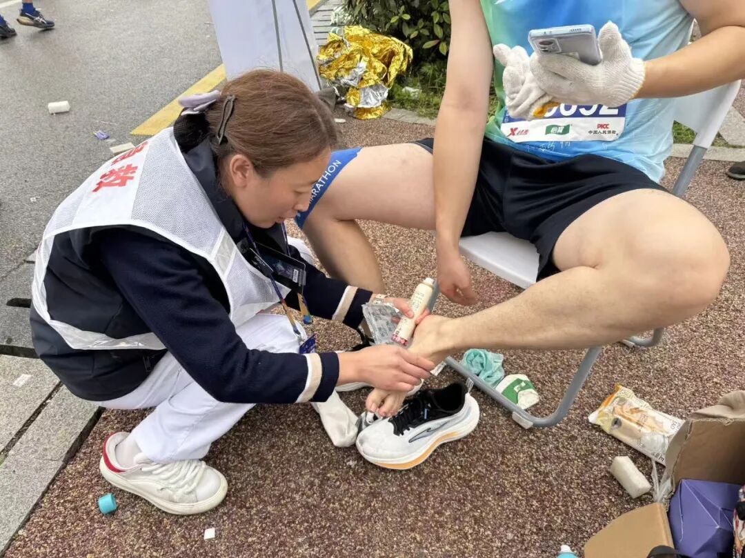 8点30分起,随着选手们陆续经过,该院救助点的需求也多了起来:有的选手肌肉突然抽筋、拉伤,有的不慎摔倒弄伤了自己,还有人因长时间奔跑出现心悸。医护团队默契配合,接诊、检查、治疗一步步推进,秩序井然。