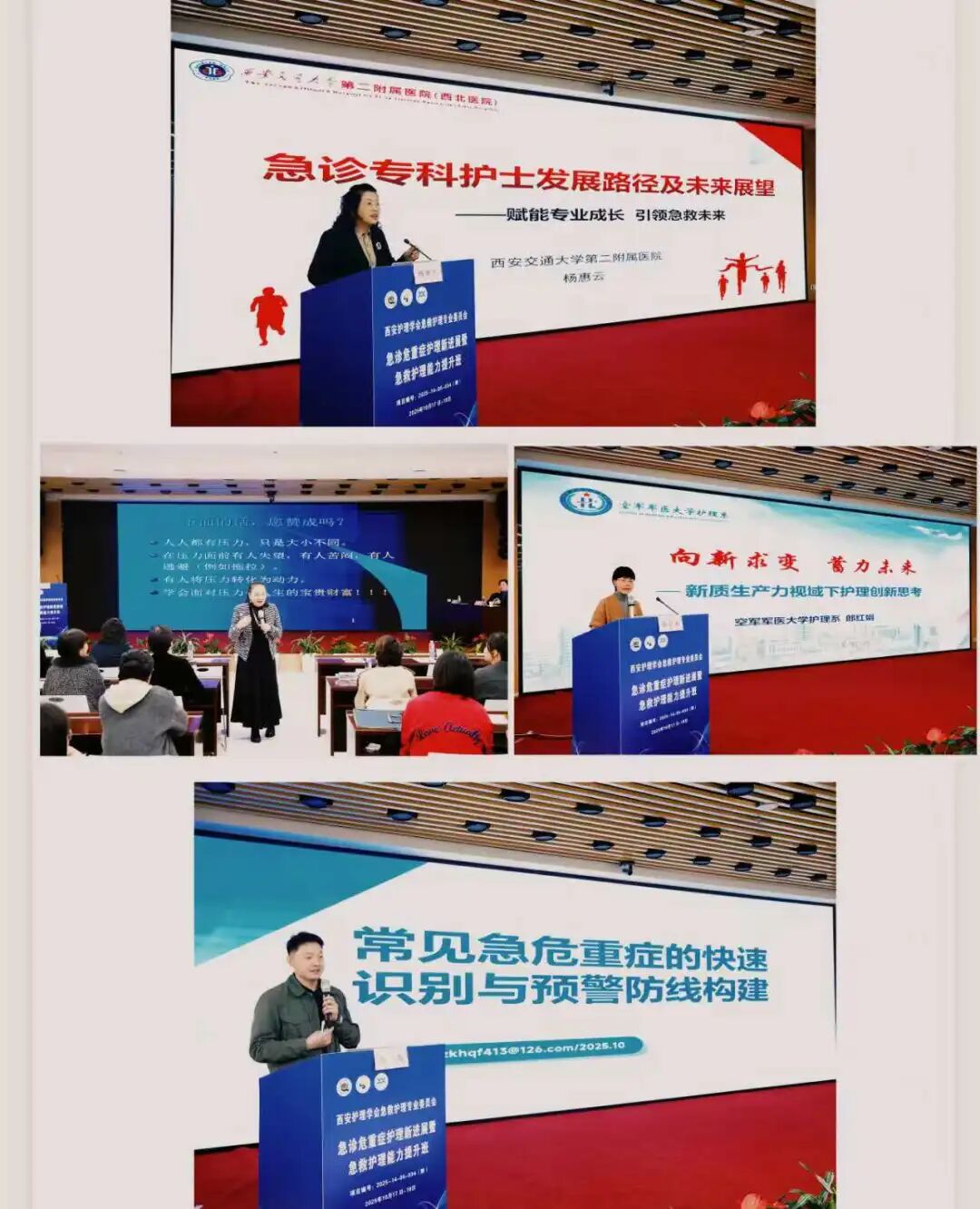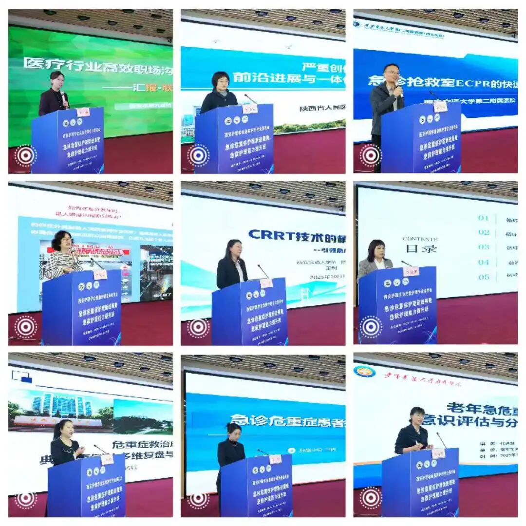 本次提升班课程内容涵盖广泛、重点突出,特邀多位急诊、重症及护理管理领域的知名专家进行专题授课。课程围绕急诊急救护理发展前沿、危重症患者精准防护体系构建、老年与妇儿危重症的早期预警与评估、CRRT与ECPR技术的精细化管理、护理人员心理调适与职场沟通等多个热点议题展开。