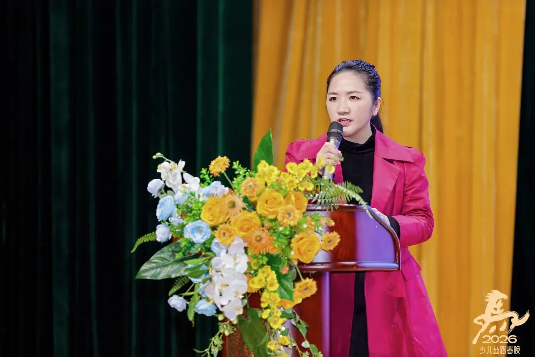 陕西少儿丝路春晚总导演封锦女士莅临大会并发表致辞。 她表示,本次盛会自初步接洽至细节策划,历经多轮深入沟通与精心调整。双方此番合作的达成,不仅源于对中华优秀传统文化的深切热爱与共同守护,更植根于对教育理念创新与艺术实践探索的坚定追求。封导特别强调并高度赞赏西咸黄冈学校在此过程中展现出的鼎力支持与务实高效的卓越执行力,她殷切期冀未来双方能进一步深化合作内涵,携手共筑更多具有广泛影响力的品牌项目,共同为少儿艺术教育事业开辟崭新路径、擘画美好未来。