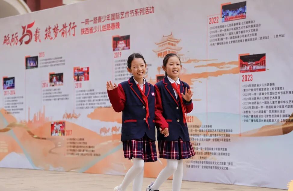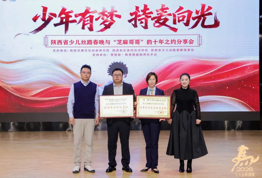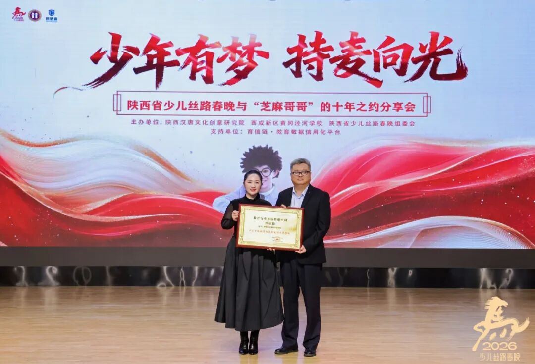 陕西汉唐文化创意研究院、陕西省少儿丝路春晚组委会及育信链平台为我校颁发牌匾。这一仪式象征着多方合作的深化,不仅是一份荣誉,更是一份责任。西咸黄冈学校将以此为契机,整合资源,推动语言艺术教育的常态化发展,实现学校、伙伴和学生的三方共赢。