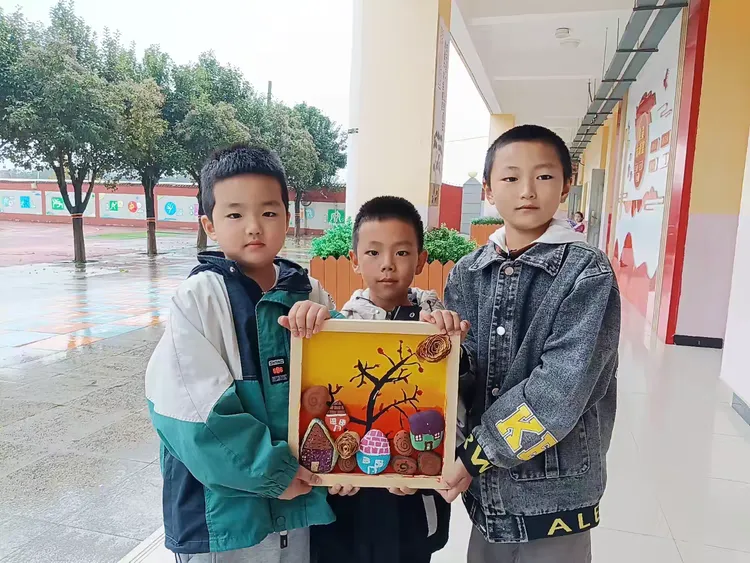 这些作品不仅展示了孩子们的艺术才华,更成为了学校课后服务成果的生动体现,为校园文化注入了一股清新而富有活力的艺术气息。孩子们将亲手制作的石头画又组合成一幅幅栩栩如生、逼真灵动的情境画面,真可谓:彩笔绘美景,巧手著奇观。