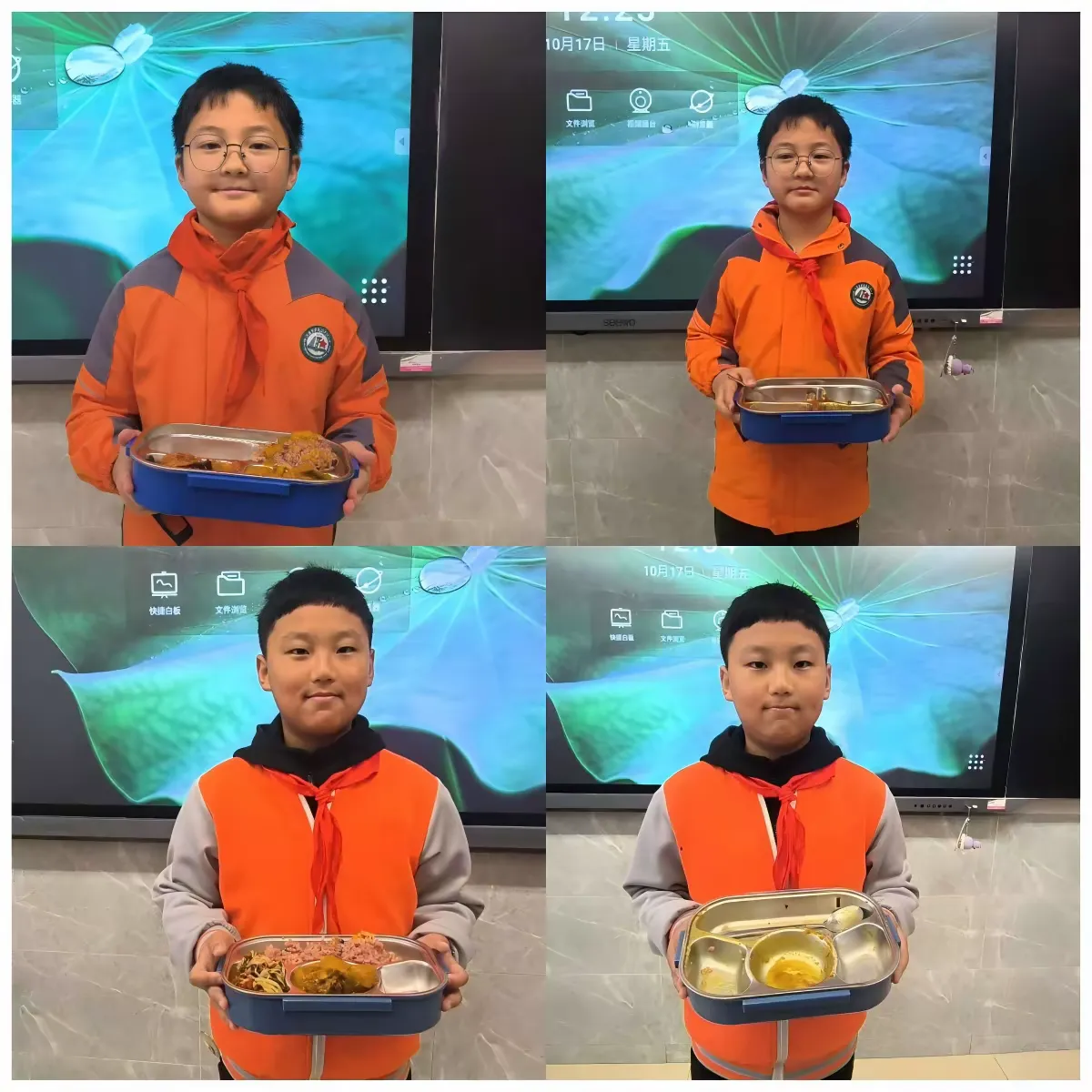 知是行之始,行是知之成。为了让节约粮食从口号变为行动,学校在宣传周期间大力推行 “按需取餐,光盘行动”。同学们在老师的引导下,自觉排队,按需取餐,吃多少盛多少。以往餐盘中剩余的饭菜明显减少,取而代之的是一个个被“一扫而光”的干净餐盘。“我今天把饭菜都吃光啦!”“我做到了按需取餐,没有浪费!”同学们骄傲地展示着自己的“战绩”,用实际行动争当“光盘小达人”。