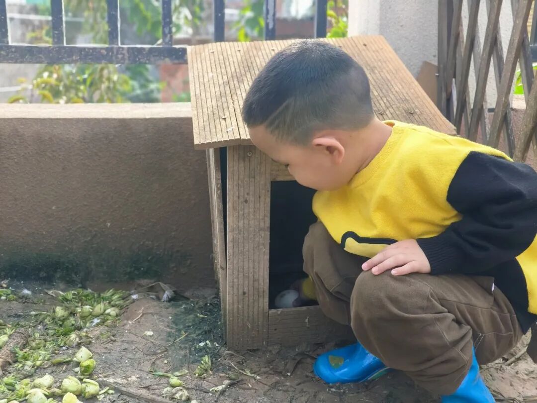 晨光中,孩子们围着鸭子的窝惊呼,每个小朋友都想去看看小鸭子。