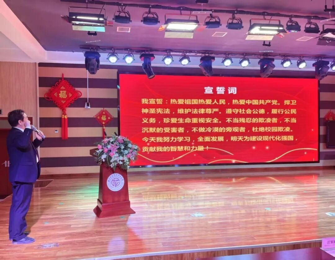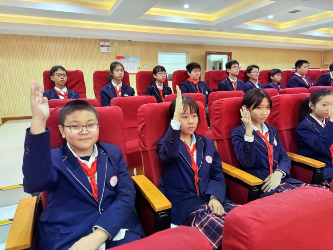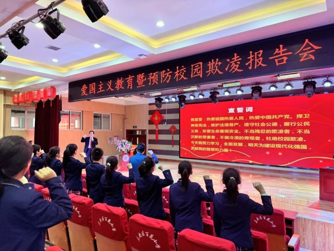 互动环节后,在党星老师的带领下,全体同学起立,举行了庄严的宣誓仪式。“热爱祖国,热爱人民,热爱中国共产党……杜绝校园欺凌……”铿锵有力的誓言,是孩子们对祖国和自我的郑重承诺。
