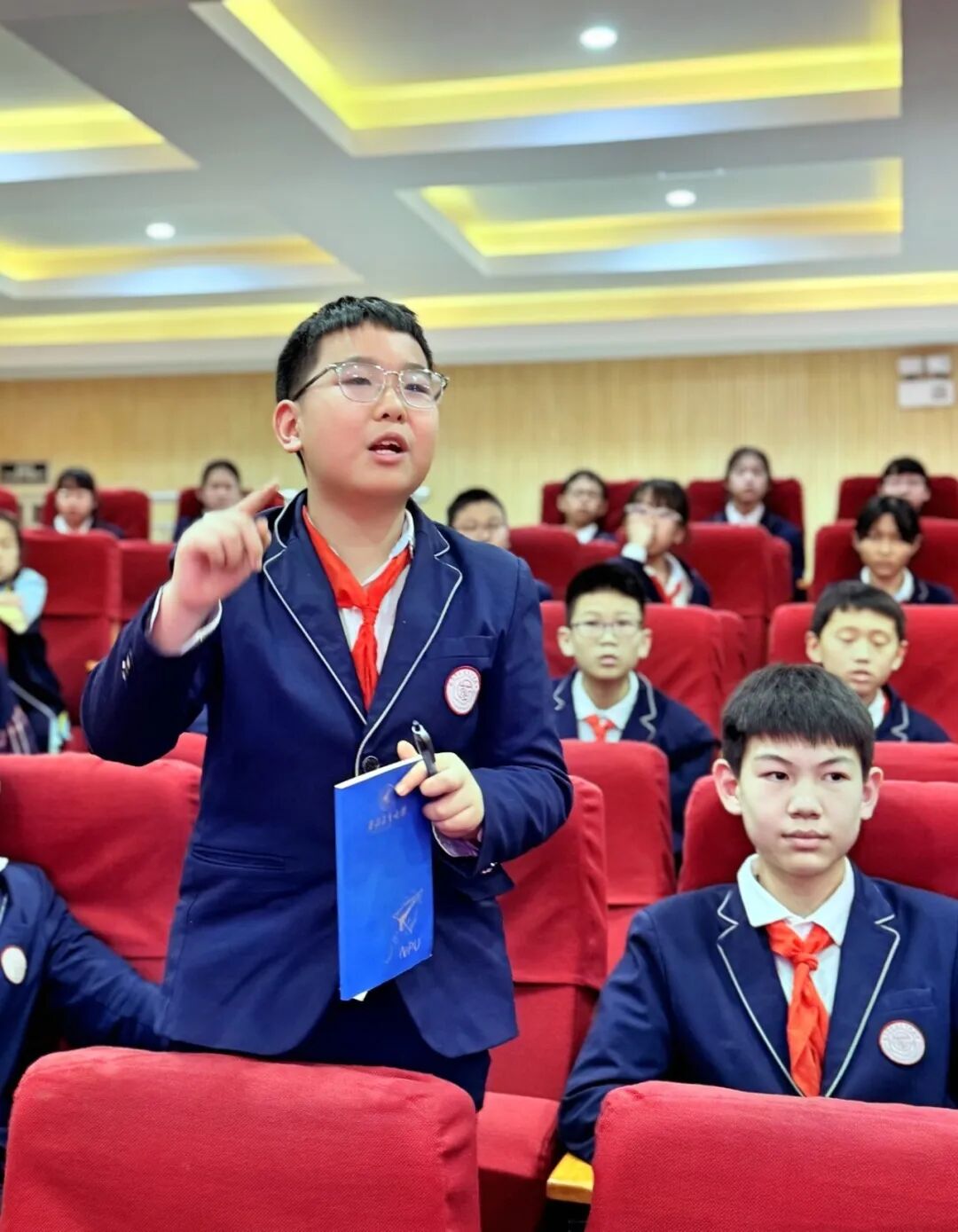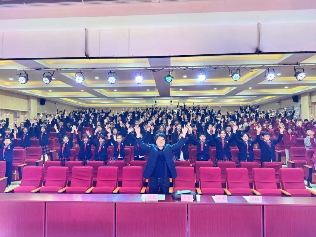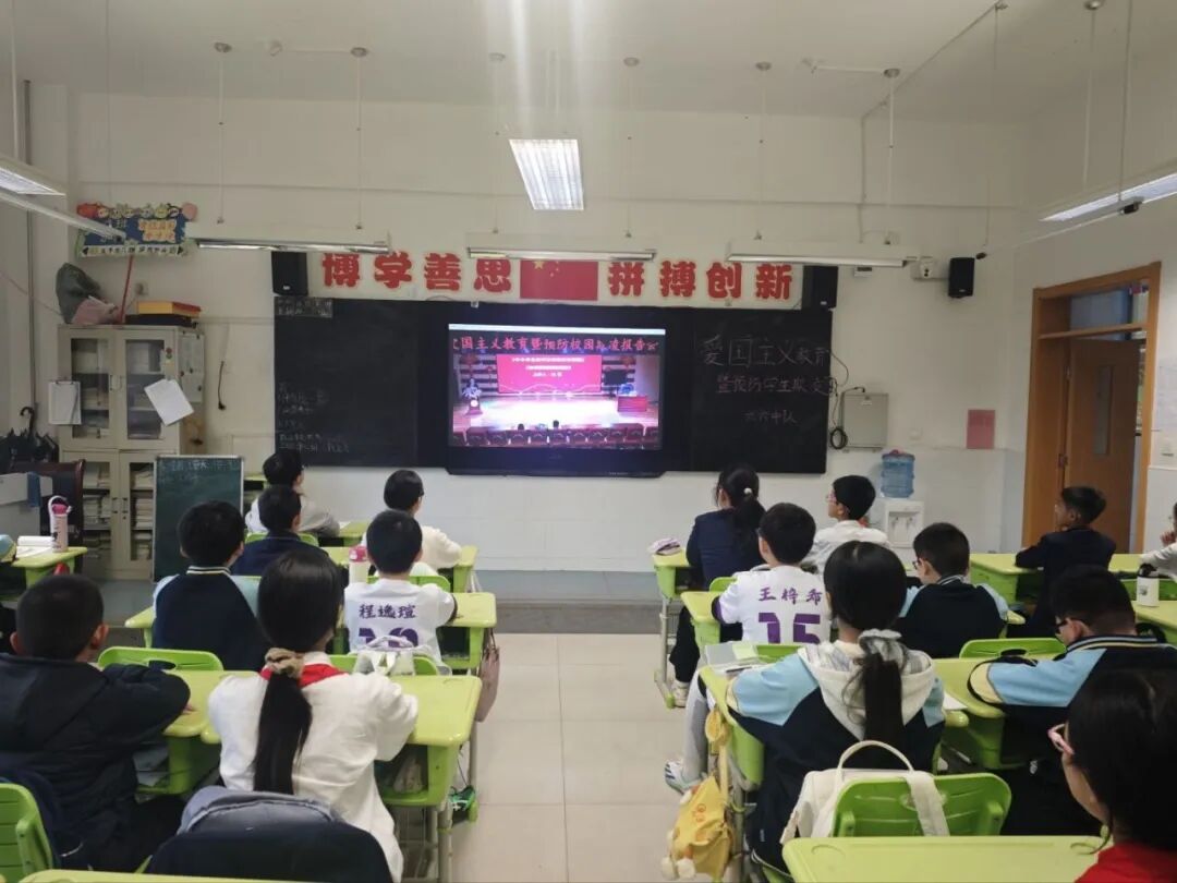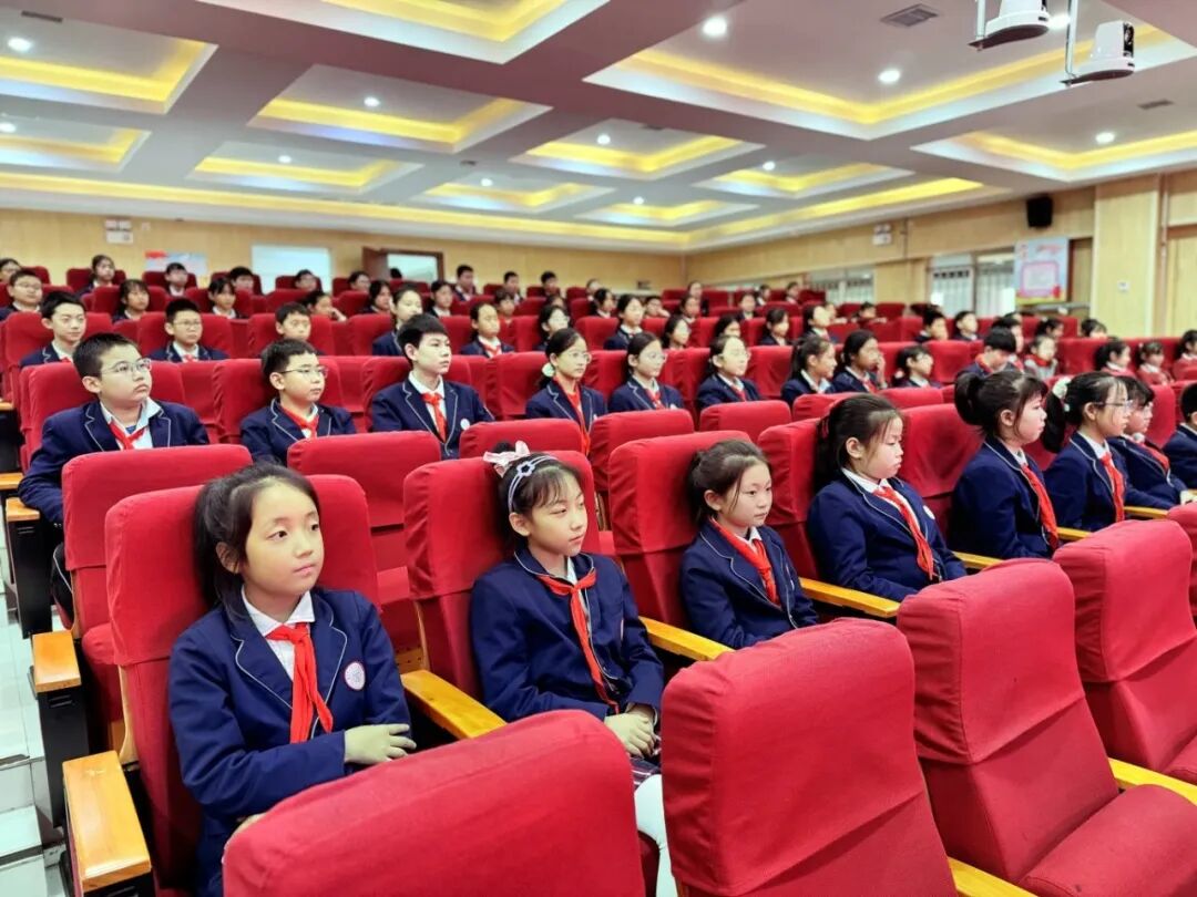 百花小学副校长王栋、后勤主任全卫平、安保主任杨文、大队部联合辅导员赵青等行政一同出席了报告会。活动设置五楼多功能厅主会场和各班级教室分会场,通过校园直播系统实现了全校师生同步参与。三至六年级共150名学生代表在现场聆听,其余同学在班主任和科任老师的精心组织下,于教室有序收看直播,确保了教育全覆盖。