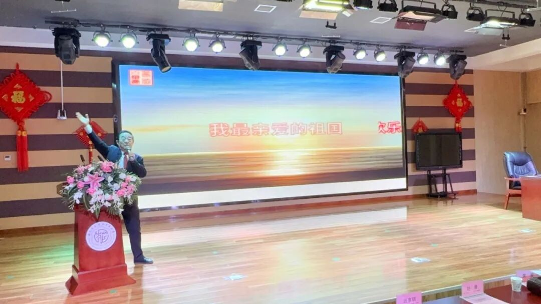 紧接着,全体师生共同高唱《我和我的祖国》,党星老师亲自领唱。深情的歌声将报告会的气氛推向高潮,“我和我的祖国,一刻也不能分割”的旋律,唱出了全体师生对祖国最真挚的情感。