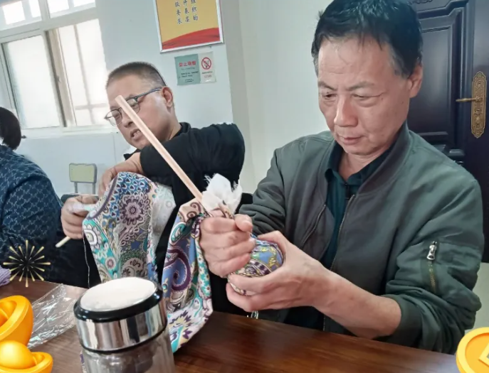 一场别致的手作盛宴立刻呈现眼前。大家边制作边交流心得,现场欢声笑语不断。“自己动手做养生锤有成就感,用着更舒心!平时肩颈不舒服,敲一敲特别放松。”居民张阿姨举着成品开心地分享。