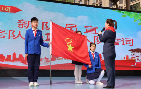 在大队辅导员的带领下,所有新队员握紧右拳宣誓,铮铮誓言在校园回响:“我是中国少年先锋队队员。我在队旗下宣誓,我热爱中国共产党,热爱祖国,热爱人民,好好学习,好好劳动,好好锻炼,准备着为共产主义事业贡献力量。”
