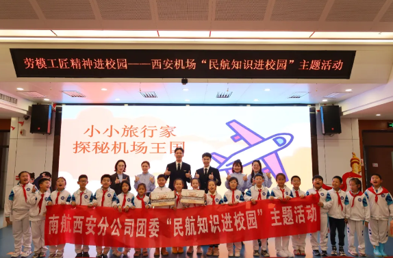 为弘扬劳模精神、劳动精神、工匠精神,激发队员们崇尚科学、探索蓝天的热情,西安机场的劳模代表与业务骨干们走进校园,为队员们带来了一场集知识性、趣味性和启发性于一体的“民航知识进校园”主题盛宴。 一位参与活动的队员兴奋地说:“原来以为劳模离我们很远,今天才发现他们就在身边。我也要像叔叔阿姨们一样,认真学习,将来在自己喜欢的领域做一名‘工匠’!”
