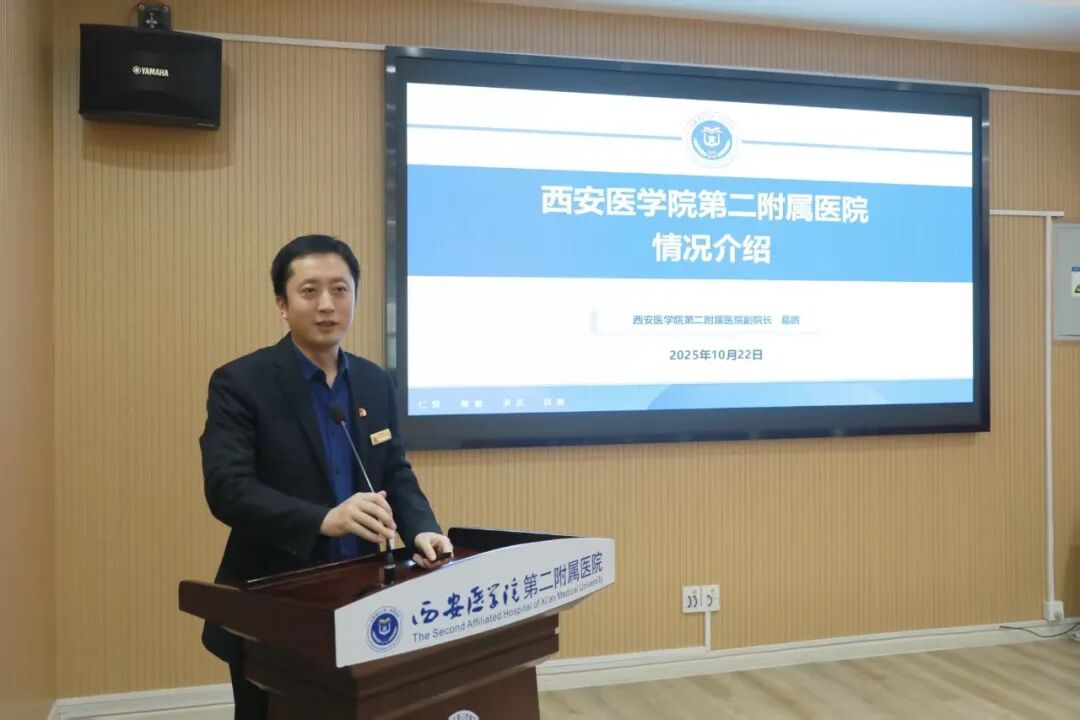 座谈会后,专题分享环节聚焦两院关注的重点领域展开。副院长葛鹏首先围绕西安医学院二附院的历史沿革、学科建设、人才队伍建设等方面,简要介绍了医院基本情况,为后续深入交流奠定了基础。