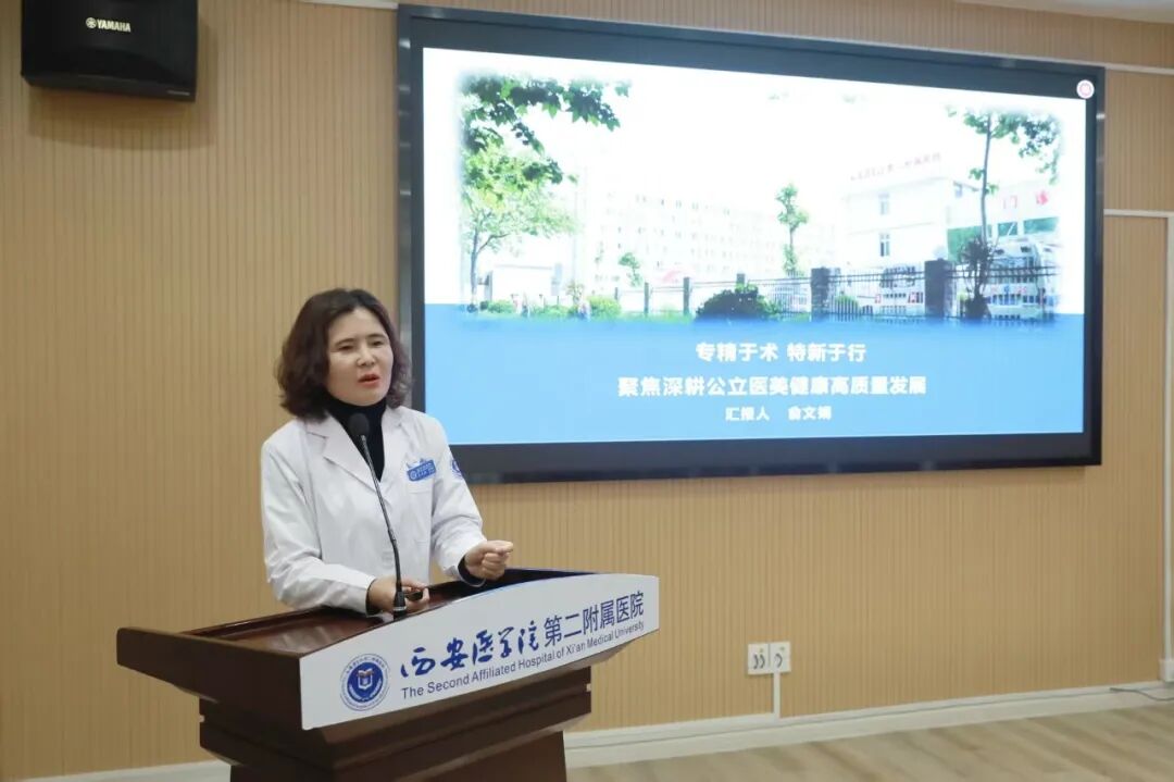 随后,西安医学院二附院美容整形医院院长俞文娟以《专精于术,特新于行——聚焦深耕公立医院医美健康高质量发展》为题作专题报告。她从“科室概况、医美市场环境与挑战、新媒体运营实践、管理模式创新、‘专、精、特、新’发展路径、公立医美品牌建设思考”六大维度,详细分享了该院在医美领域的实践成果、创新举措与发展思路,为同行提供了可借鉴的“公立医美发展样本”。