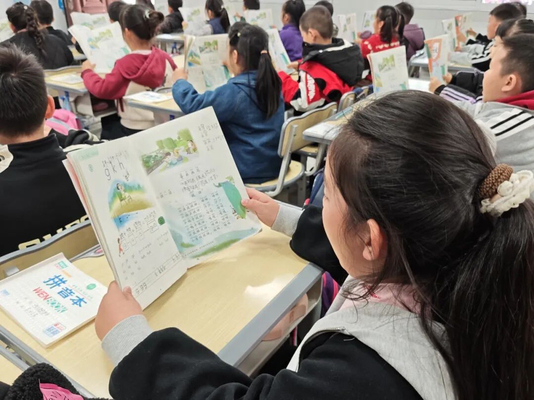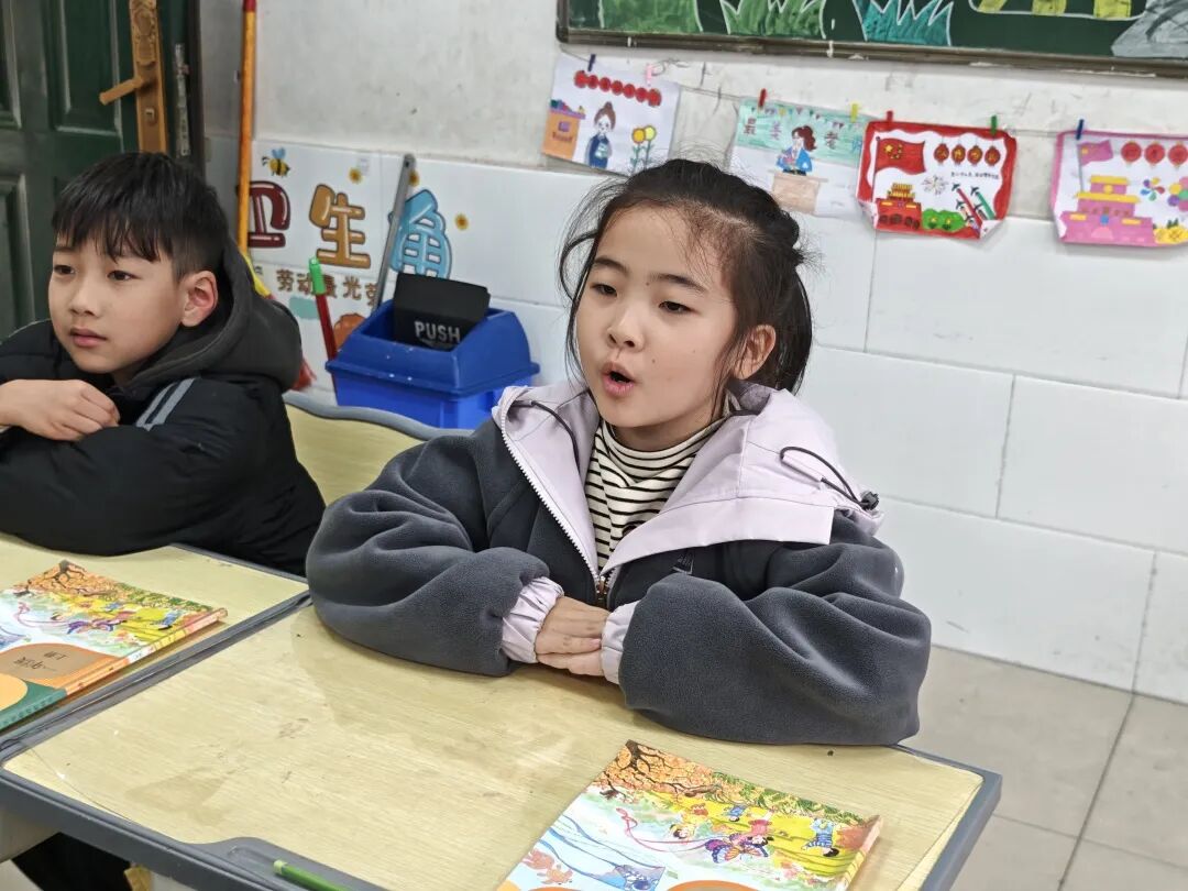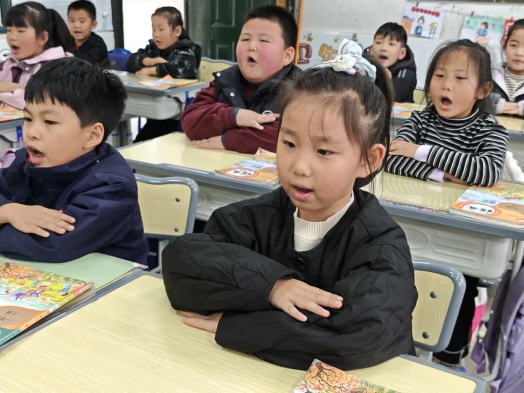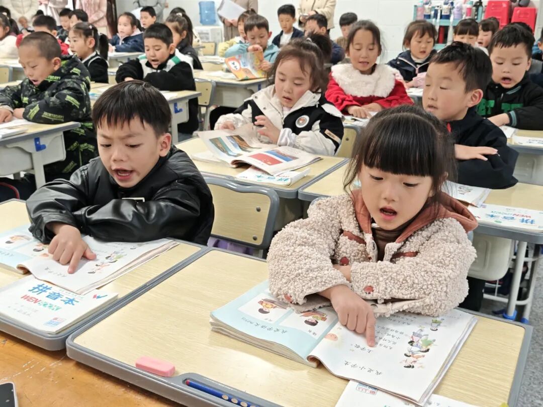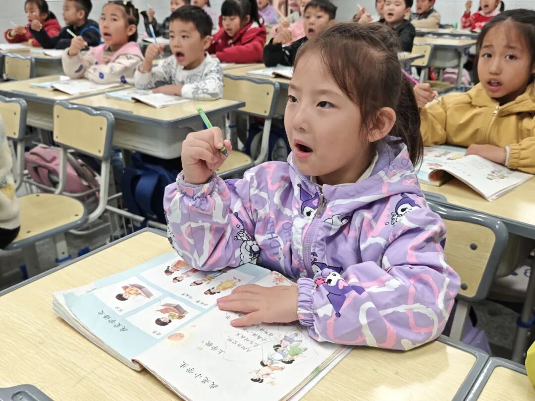 “头正、身直、肩平、足安”“请你翻到多少页——我就翻到多少页”“左手压书,右手指字!”一字一句,抑扬顿挫,朗朗的读书声洋溢在教室的每个角落。稚嫩的童声,昂扬的精神面貌,处处体现出孩子们好学、努力的优秀品质。