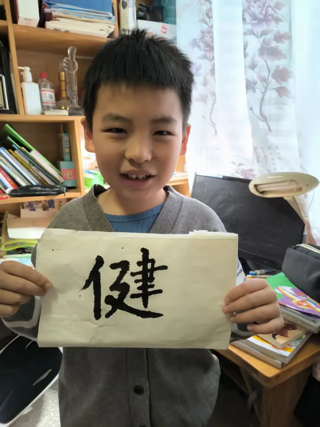 操场上,孩子们奋力奔跑的身影,像要把“健”字揉进秋风里:小楷般的步伐工整利落;隶书似的臂膀摆动厚重有力;行书样的跑动流畅轻快;篆书式的身姿舒展古朴。一节课后,跑道外圈成了“百米健身墙”——每个孩子笔下的“健”字贴在这儿,汗珠打在字上,竟晕出不一样的棱角。孩子们忽然懂了:这字的一撇一捺里,正藏着自己慢慢长起来的劲儿呢。
