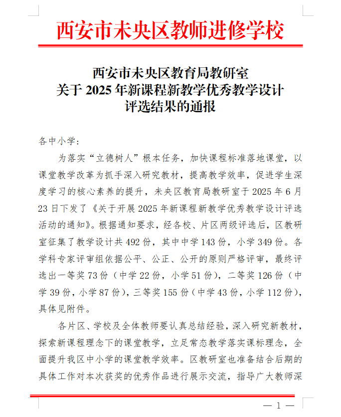 这份荣誉不仅是三位教师个人专业能力的体现,更是该校长期以来重视教师专业发展、深耕课堂教学改革的成果彰显。该校将以此为契机,组织全体教师深入学习获奖教学设计的先进经验,持续探索新课程理念下的高效课堂模式,助力教师专业成长,推动学生核心素养全面提升,为未央区教育高质量发展贡献二小力量!