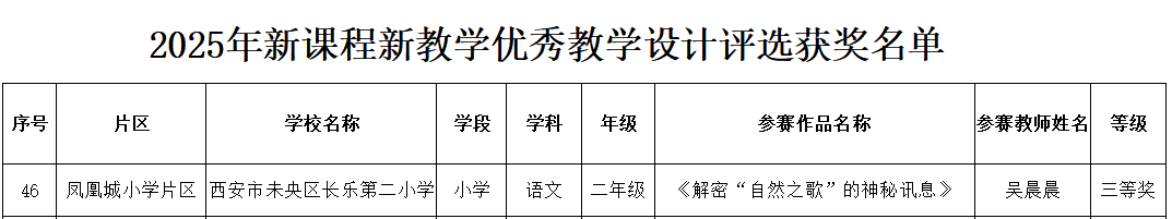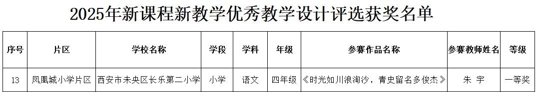 日前,长乐第二小学朱宇、吴晨晨、马敏三位教师在西安市未央区2025年新课程新教学优秀教学设计评选活动中,凭借对新课标理念的深刻把握、对新教材的深入钻研以及对课堂教学的创新探索,在全区492份参赛作品中脱颖而出,为学校教育教学改革再添亮丽成果!