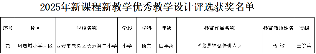 马敏老师的四年级语文教学设计《我是神话传讲人》以沉浸式的神话传讲活动激发学生文化传承意识,荣获三等奖。