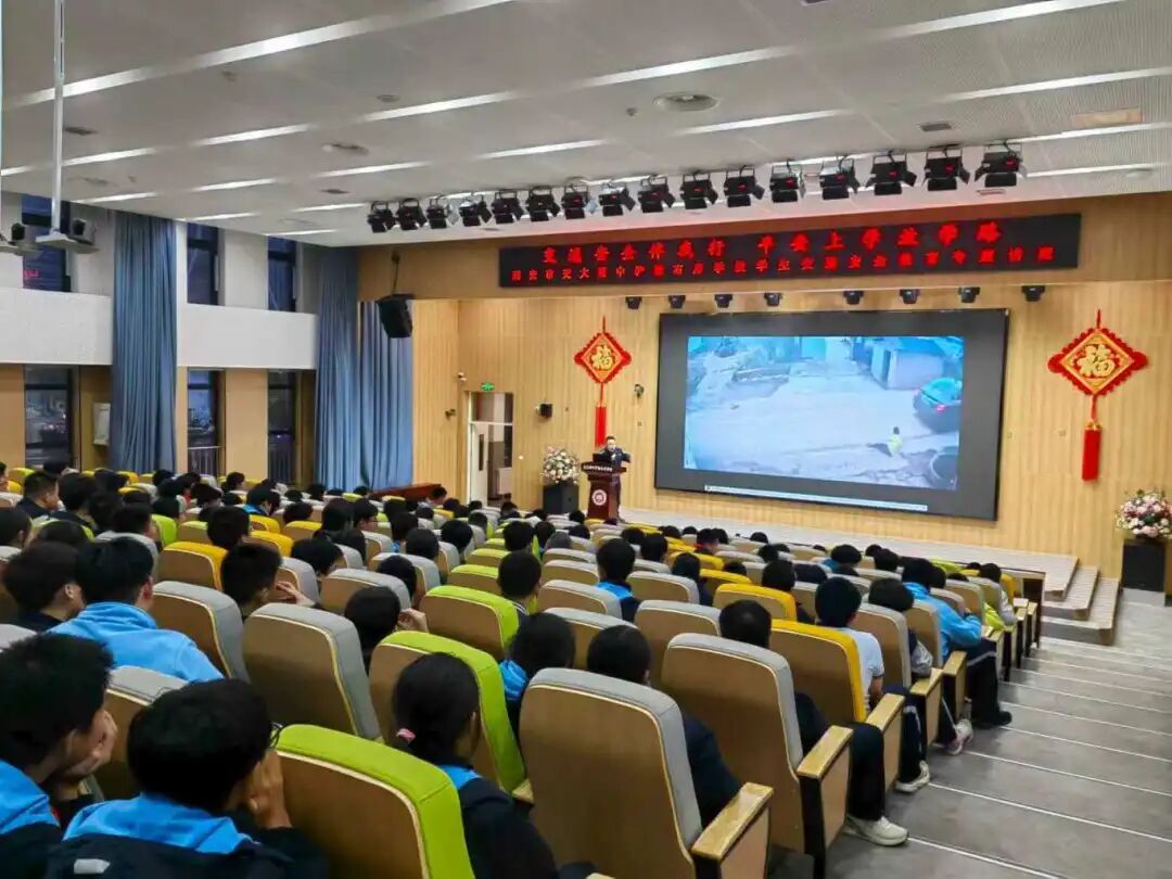 授课围绕学生步行、骑行、乘车三类常见出行方式展开,重点讲解安全规范和风险防范要点。在步行方面,强调遵守交通信号、走人行横道、不在马路嬉戏打闹;骑行环节,提示正确佩戴头盔、不闯红灯,并明确未达法定年龄不得骑车上路;乘车环节,演示安全带正确使用方法,讲解勿将身体探出窗外及规避车辆盲区等知识。课程结合真实案例进行解析,并设置互动问答,学生认真听讲、踊跃参与,现场气氛热烈。
