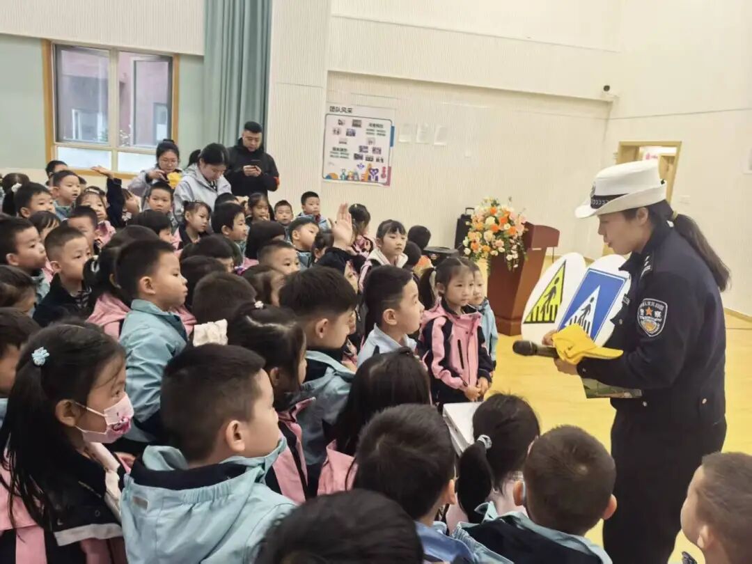 最让孩子们兴奋的是情景互动环节,小朋友们在民警的带领下,现场模拟情景体验,充当起“小交警”和“行人”的角色,在“剧情”实践中学会了红灯停、绿灯行,过马路左右看,安全乘车、“一盔一带”等常用安全注意事项,让安全出行意识在体验式教学中落地生根。
