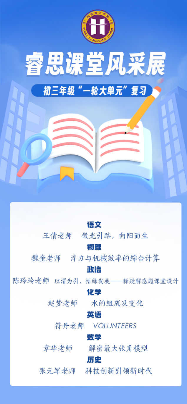 睿思燃灯照备考征途,精研琢玉筑成长基石。10月23日,西咸黄冈学校聚焦初三 “承前启后、衔接中考” 的关键节点,启幕睿思课堂展示活动。本次睿思课堂以 “单元为脉串知识、思维为刃破难点” 为核心,借教师的示范课堂铺展教学巧思。每一节浸润匠心的课堂、每一场碰撞智慧的教研,既彰显了师者 “磨课千遍终不悔” 的热忱,更诠释了学校为初三学子夯实学业根基、点亮备考明灯的坚定初心。